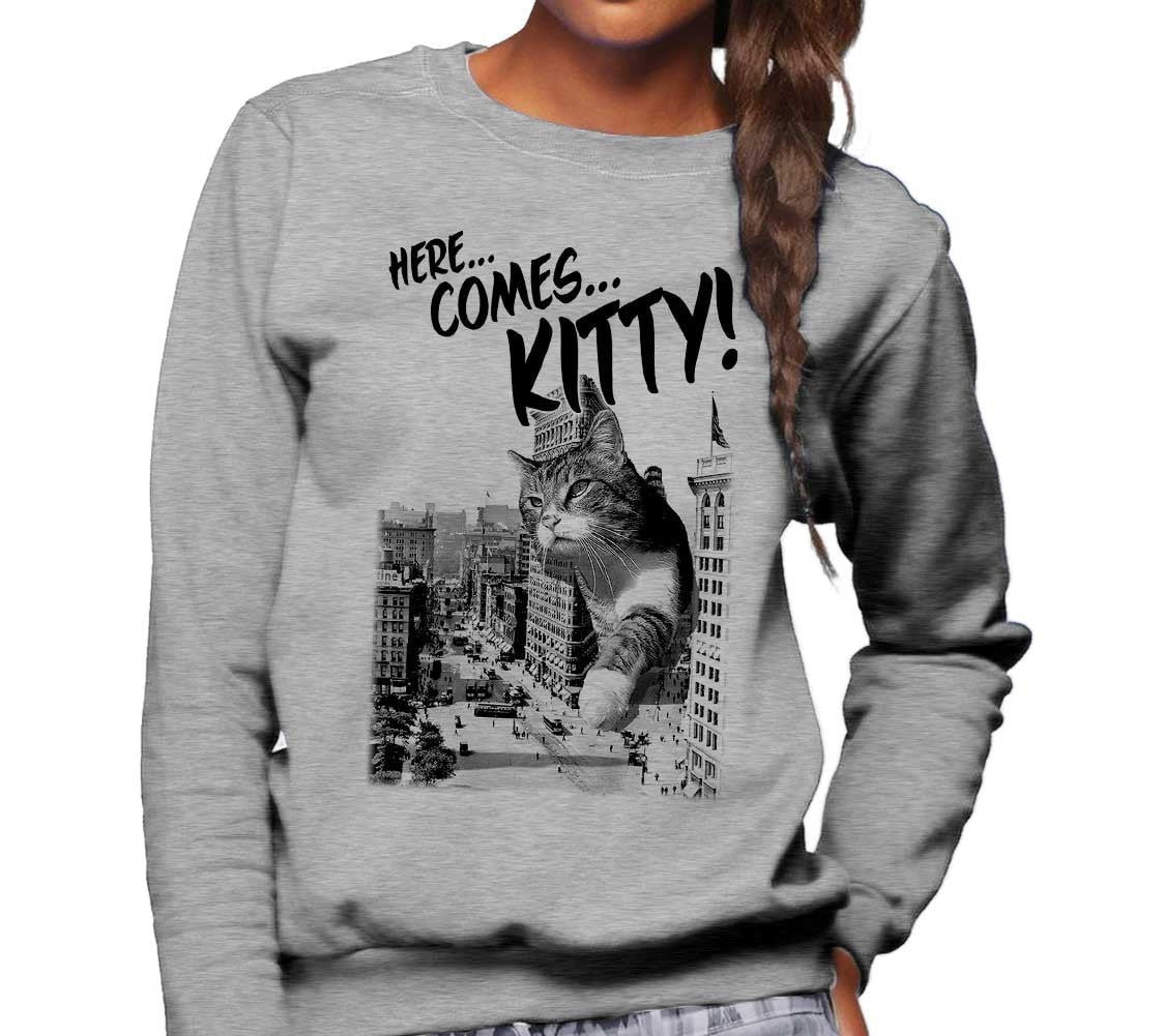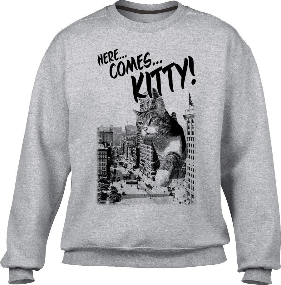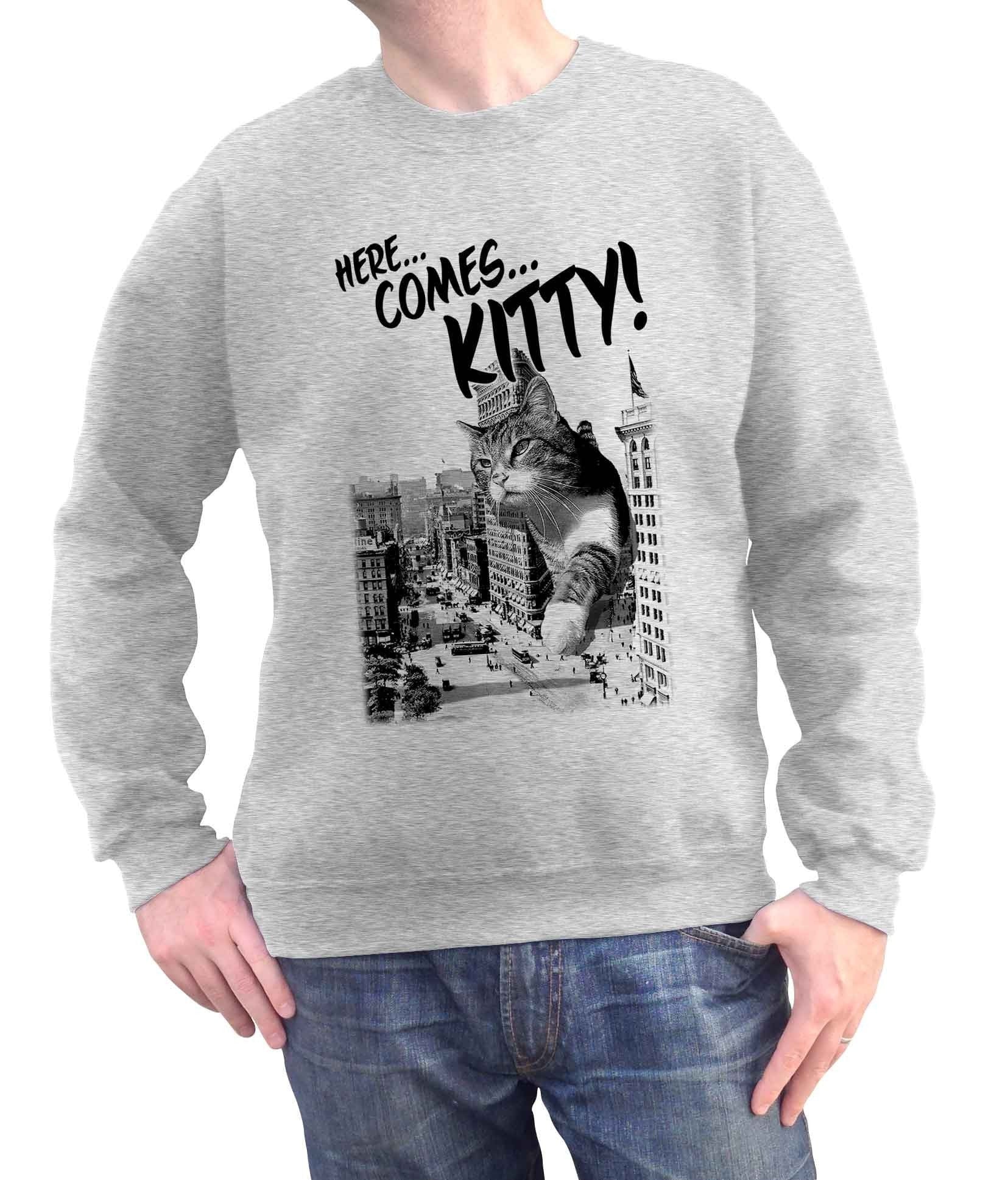 Unisex Here Comes Kitty Sweatshirt Funny Giant Cat Sweatshirt