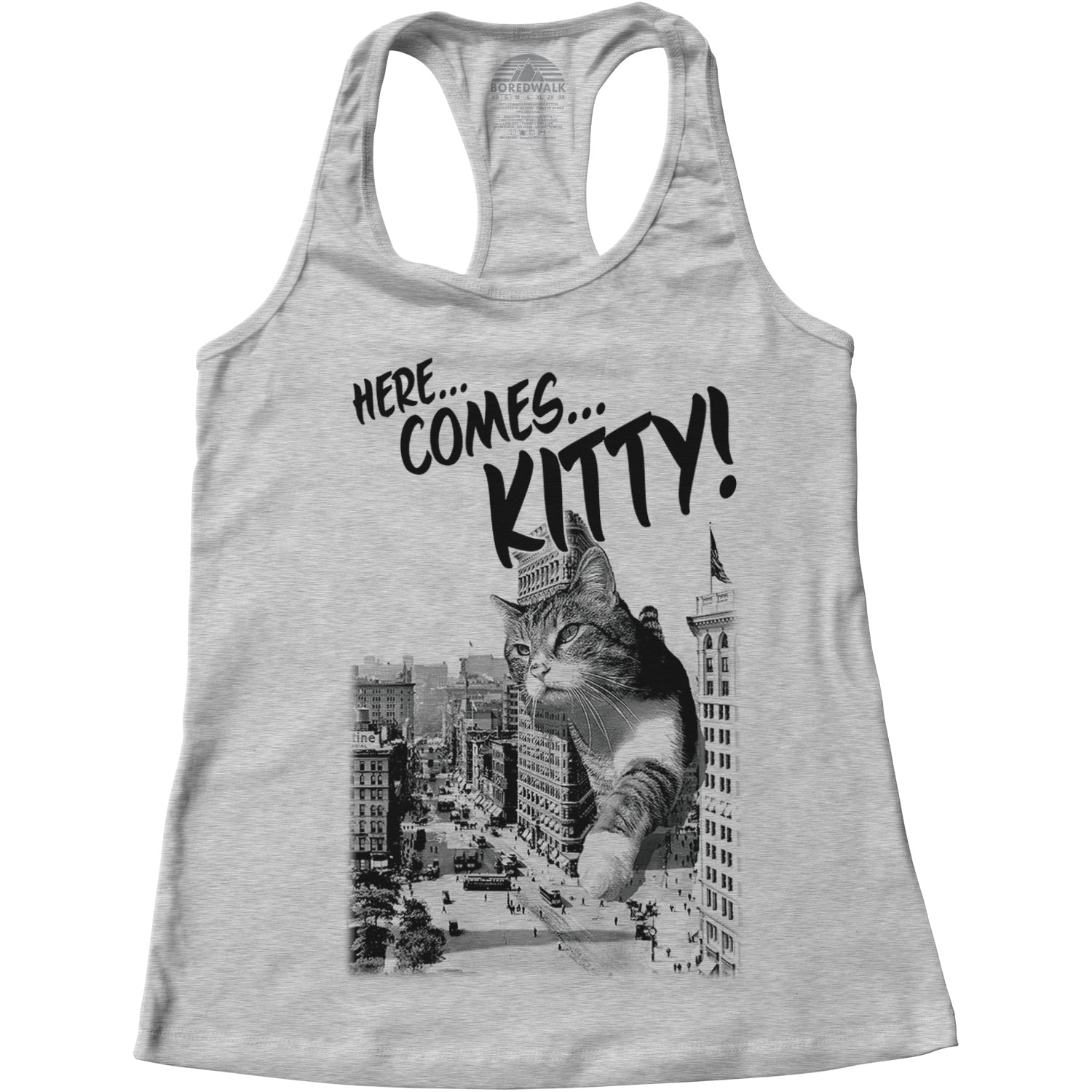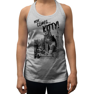 Heard of Godzilla? How about Catzilla?! Well, be careful! Our "Here...Comes...Kitty!" cat lover shirt will give you a fierce case of the giggles! If you're into funny cat shirts (and let's face it, who isn't?!) then this funny meow shirt is the hilarious cat shirt you've been looking for! This building crushing, pedestrian terrorizing, cute cat shirt is quite the anomaly - do you climb a skyscraper to tickle his ears or run for your life? Well, if you really are a crazy cat lady then you know to...RUN! This kitty shirt also makes the perfect cat lover gift, funny cat shirt, crazy cat lady gift, or Catzilla tank top for the B movie lover in your life!