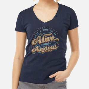 Women's What a Time to be Alive and Anxious Vneck T-Shirt