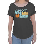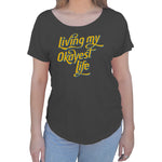 Our fashion-forward, flowy fit ladies tees are made of soft, light weight, ringspun cotton. We print all of our designs using eco-friendly water-based inks. All of our items are designed and hand-printed to order in our southern California studio.