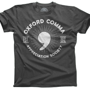 Grammarians everywhere will appreciate this funny, geeky, grammar nerd shirt. Perfect for the grammar snob, librarian, English teacher, copywriter, or copy editor in your life. Celebrate the Oxford comma in style with this retro nerdy shirt.