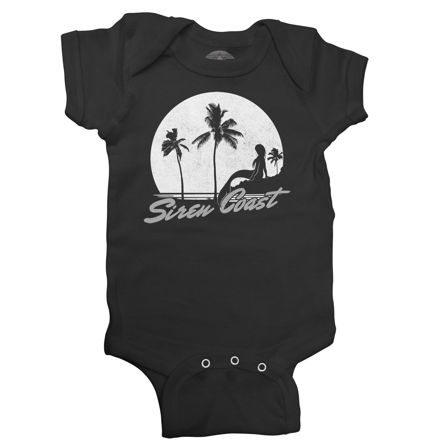 Spend your summer beach vacation on the Siren Coast, a palm tree adorned island where the mermaids emerge from the sea to lull you into a trance with song and then drown you in the ocean. This horror inspired goth infant bodysuit is the perfect look for mermaid fans with gothic sensibilities. If you prefer your mermaid tales more creepy than Little Mermaid cutesy, this infant bodysuit is a must-have.