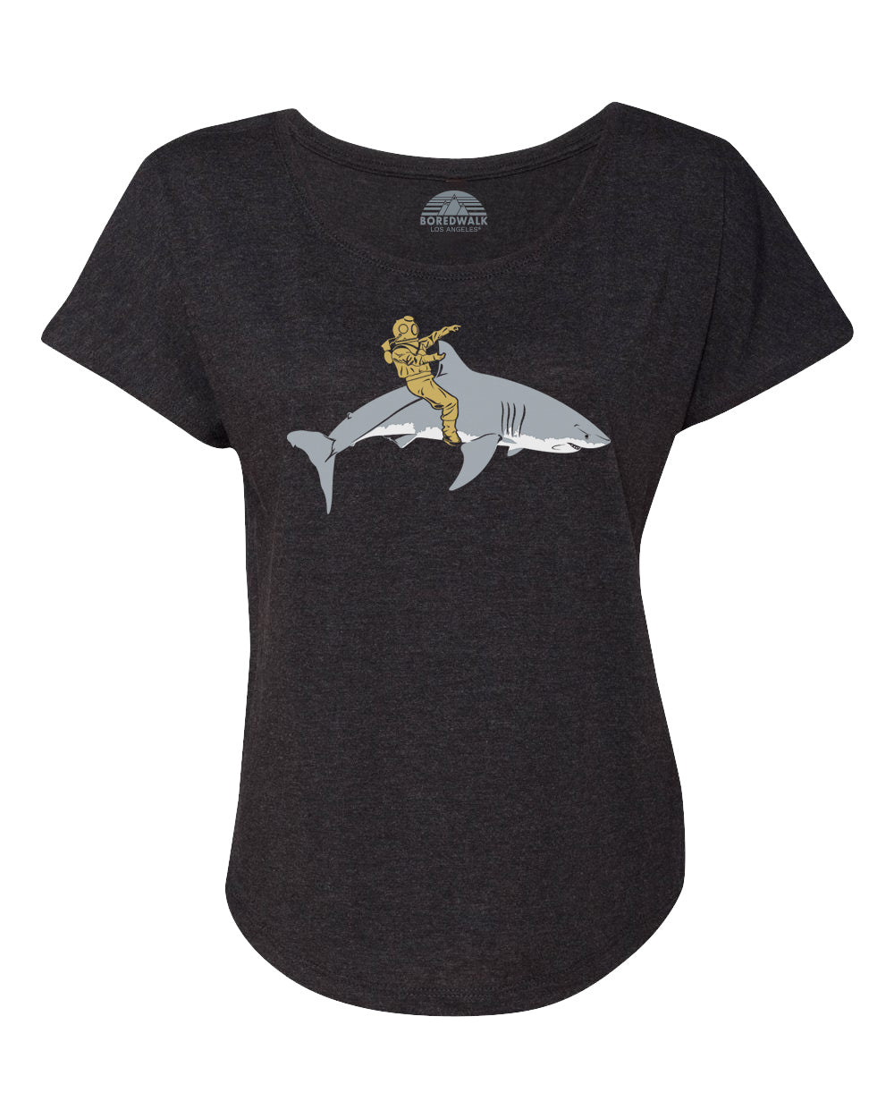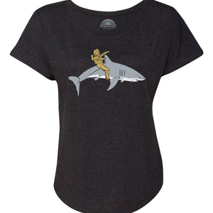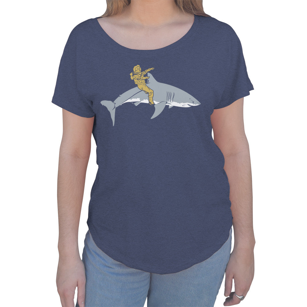 Women's Diver Riding a Shark Scoop Neck T-Shirt