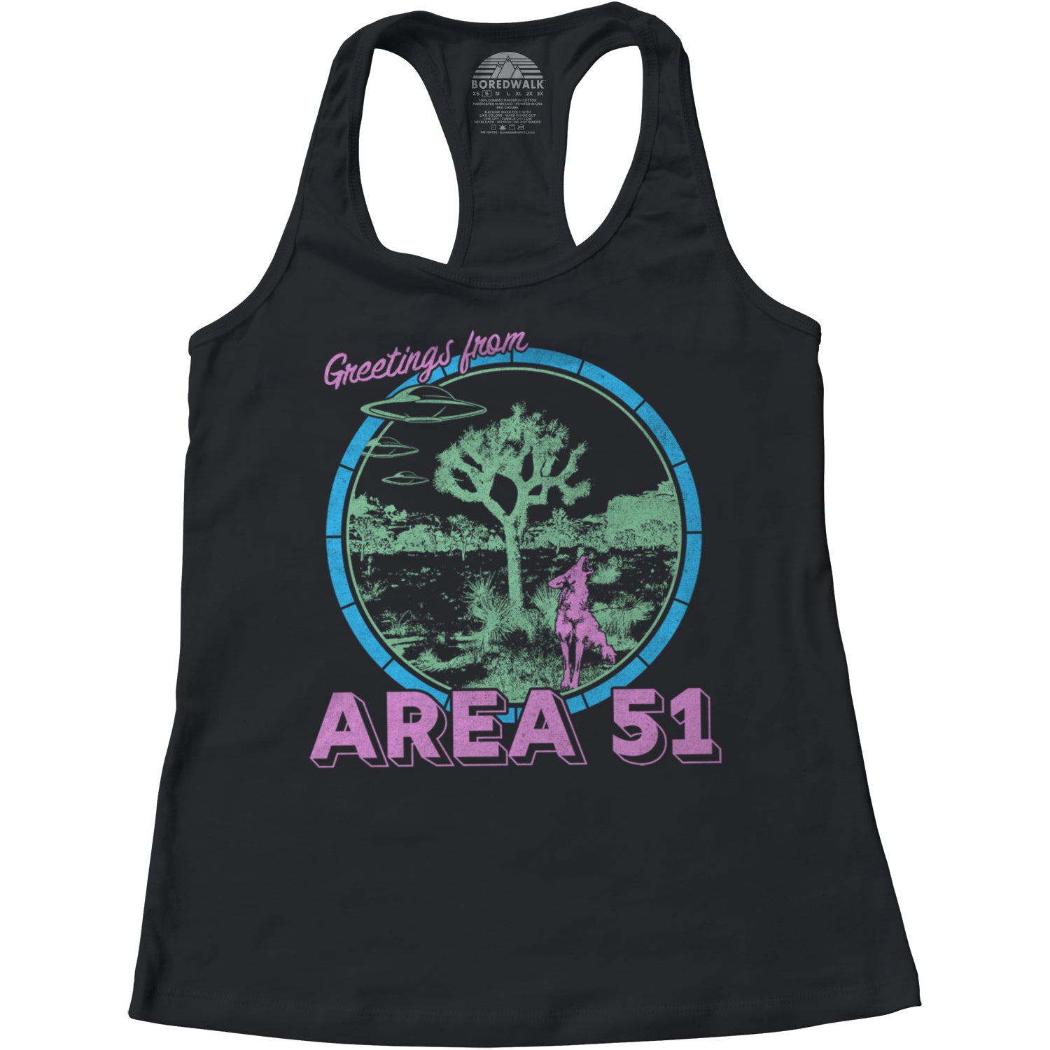 Getting sick of human companionship? Perhaps it's time to make some alien friends. If spying on extra terrestrials and flying saucers in the desert is your kind of thing, this sci fi inspired shirt is a must have. Loaded with UFOs, a howling coyote, and a dash of neon aesthetic, this cool Area 51 shirt makes a great gift for science fiction fans.