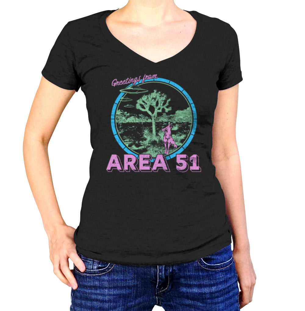 Women's Greetings from Area 51 Vneck T-Shirt