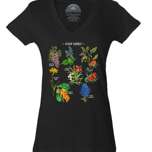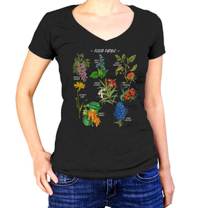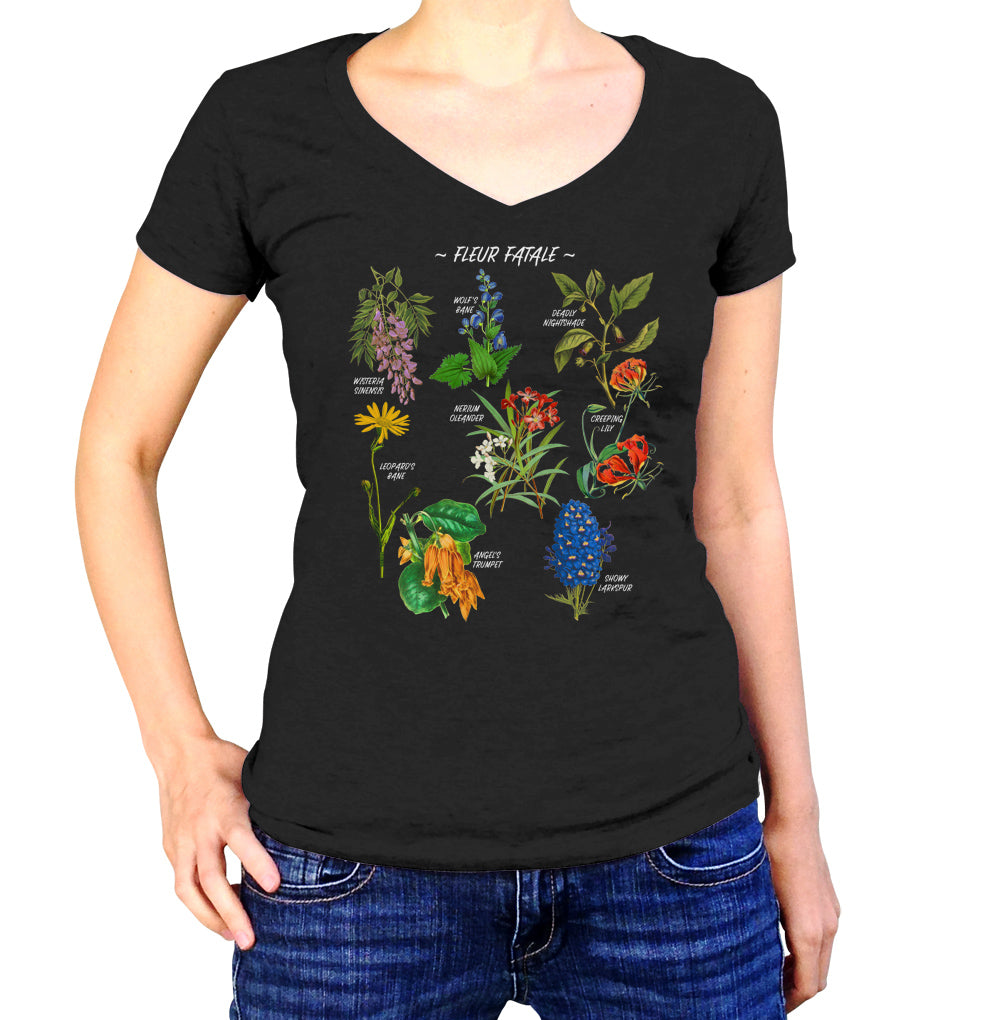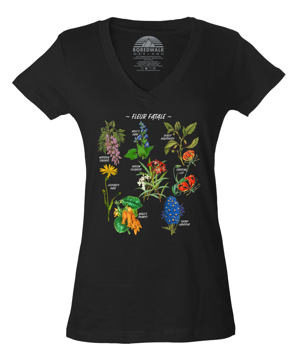 Women's Fleur Fatale Toxic Botanical Chart Vneck T-Shirt