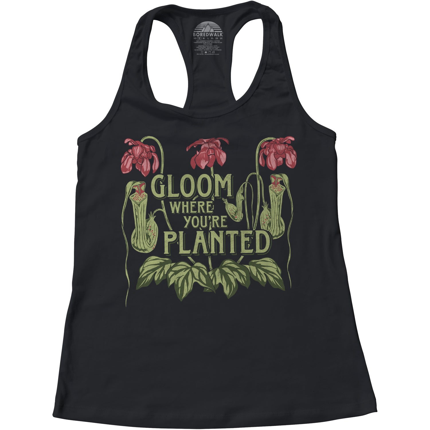 This original botanical illustration shirt makes a great gift for fans of gardening, goth fashion, and carnivorous plants. Nature and plant lovers will appreciate this unique depiction of bog and pitcher plants. The quote contained amid the botanicals encourages you to embrace your gloomy nature.