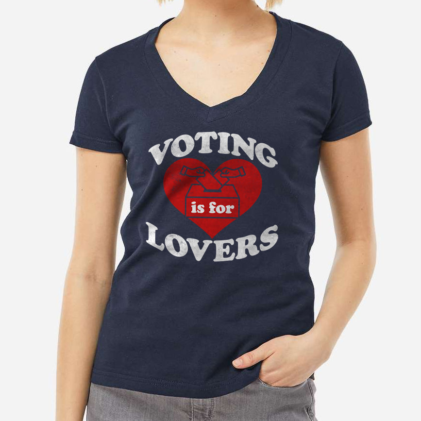 Celebrate democracy with this election shirt that encourages everyone to get out the vote. This retro inspired political shirt is perfect for the activist who is registering people to vote or the Democrat canvassing for their favorite candidate. Celebrate civic engagement in style with this 1970s inspired voter shirt.
