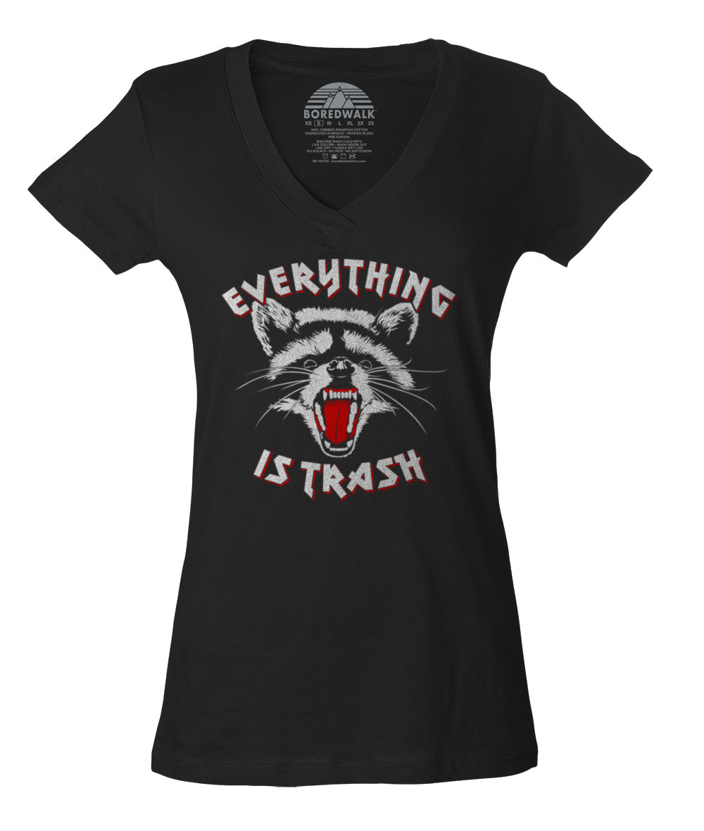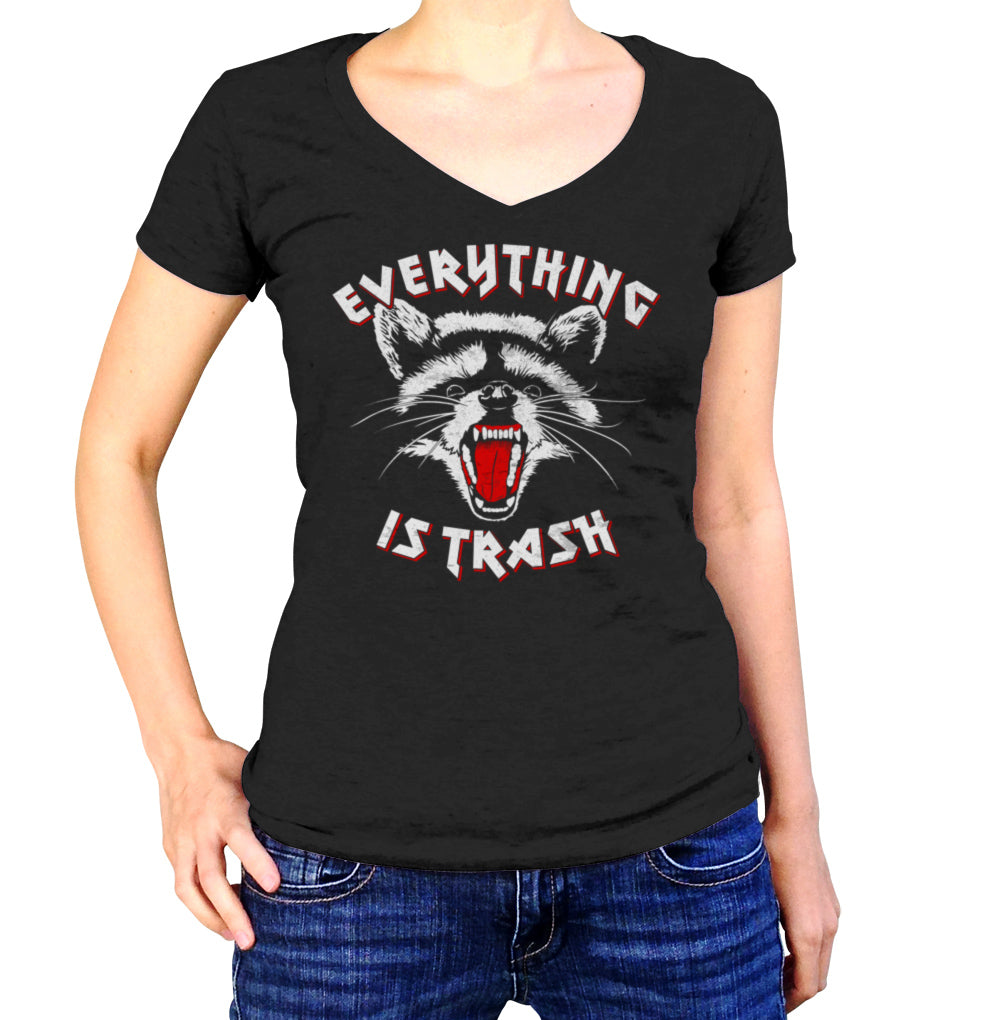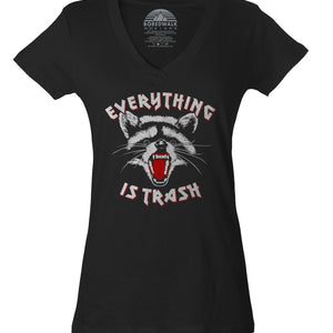 Women's Everything is Trash Raccoon Vneck T-Shirt