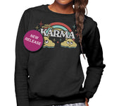 Our unisex crew neck fleece sweatshirts are perfect for staying cozy warm on chilly days. We print our designs using eco-friendly water-based inks. All of our items are designed and hand-printed to order in our southern California studio.