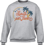 Our unisex crew neck fleece sweatshirts are perfect for staying cozy warm on chilly days. We print our designs using eco-friendly water-based inks. All of our items are designed and hand-printed to order in our southern California studio.