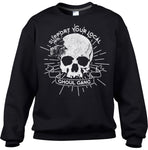Our unisex crew neck fleece sweatshirts are perfect for staying cozy warm on chilly days. We print our designs using eco-friendly water-based inks. All of our items are designed and hand-printed to order in our southern California studio.