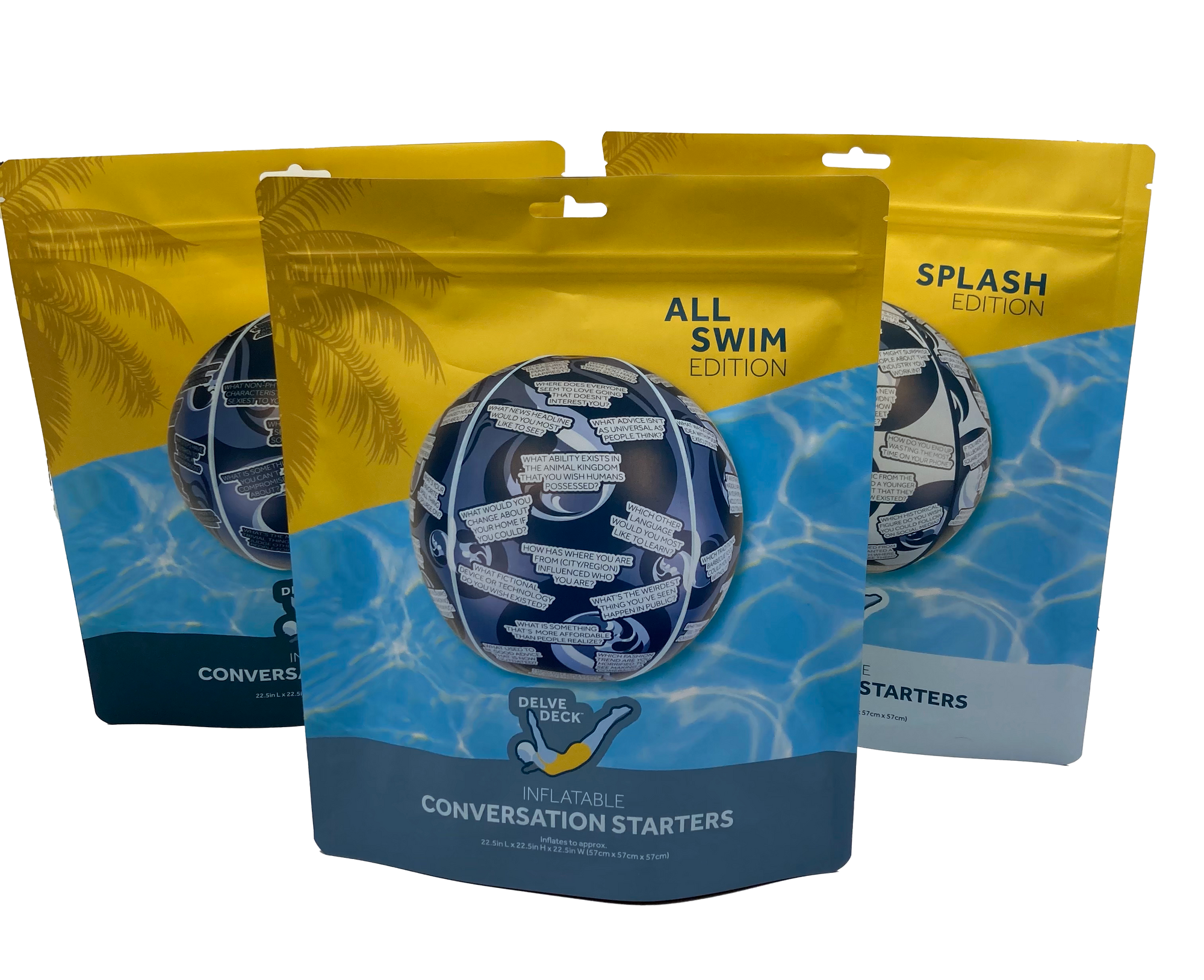 The Delve Deck Beach Balls are not only a blast to toss around but also brilliant conversation starters, making it easy to break the ice and deepen bonds. Take it to the pool, hot tub, lake, beach, park, or cook out and toss it around with friends and family.