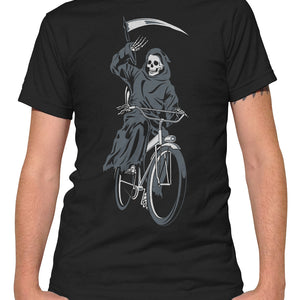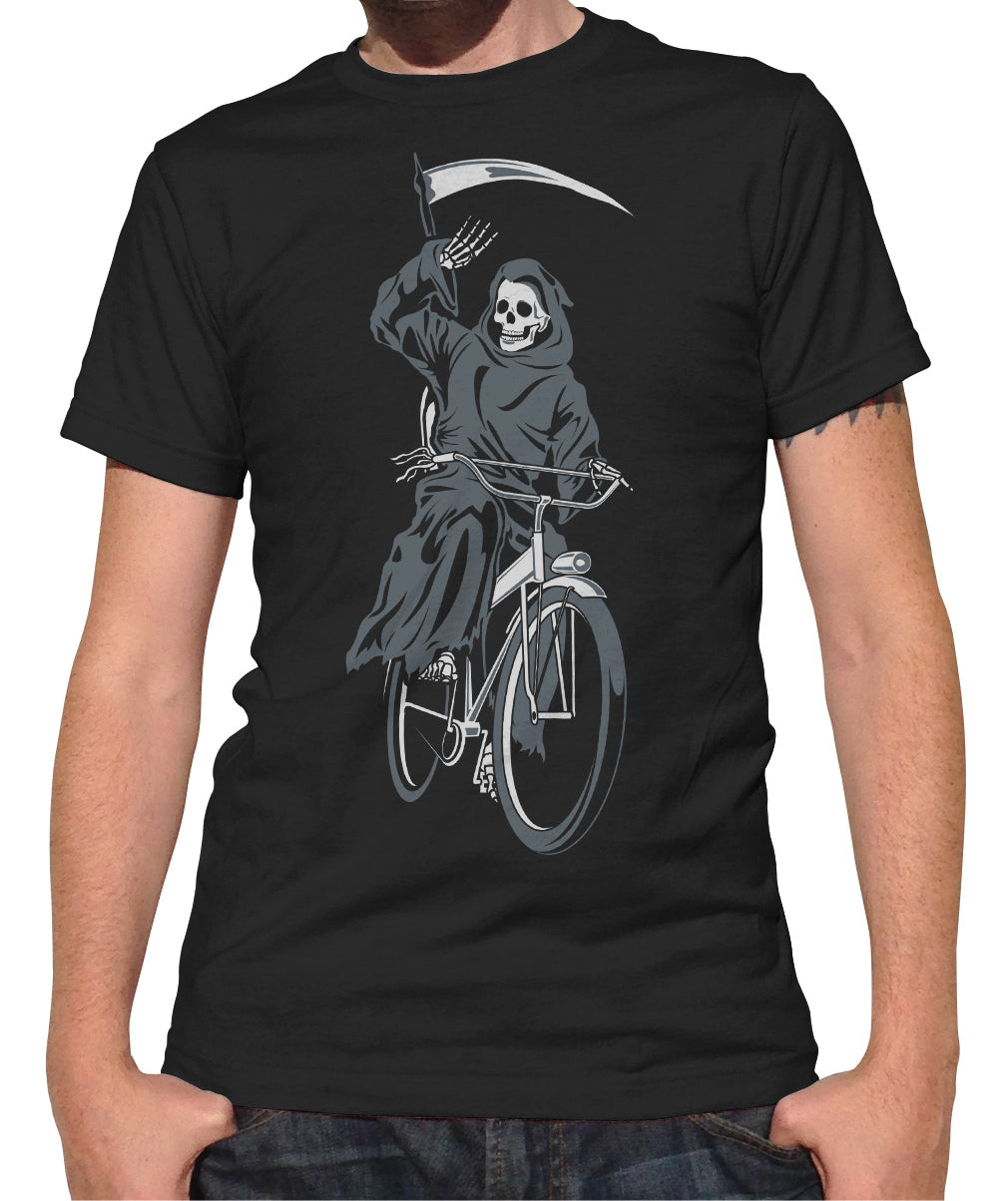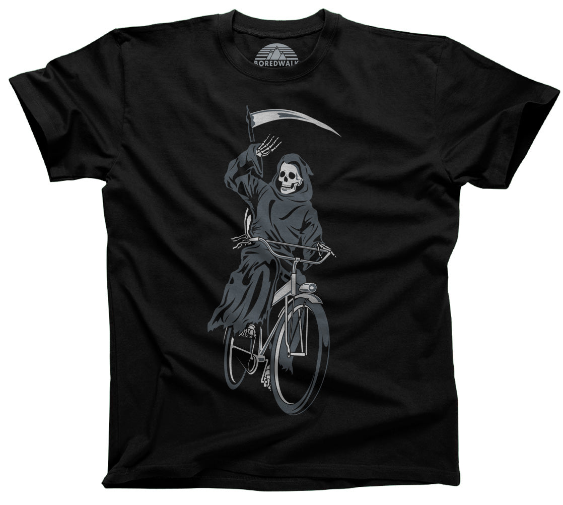 Even death needs a day off now and then. Check out this funny grim reaper on a bike, just enjoying an afternoon of leisure. This funny goth bicycle shirt makes a great gift for anyone with a dark sense of humor.