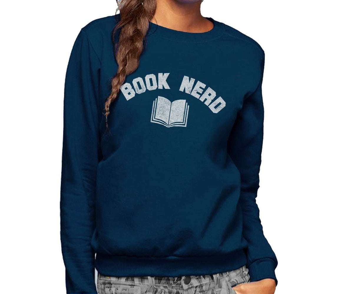 Have you ever longingly gazed off into the distance thinking, I'd rather be reading? Then chances are you're a book lover who can use a little reading humor on the days you're not immersed in a fine piece of literature. This fun "Book Nerd" shirt is an ode to the daydreaming librarian or the college student who's crushing literary exams before diving into the next great adventure on the bookshelf at the library. If you're looking for a book worm shirt to express your passion for reading then this funny book lover shirt is the perfect fit for you! Plus, literary sweatshirts are a great way for introverts to break the ice and share that literary love.