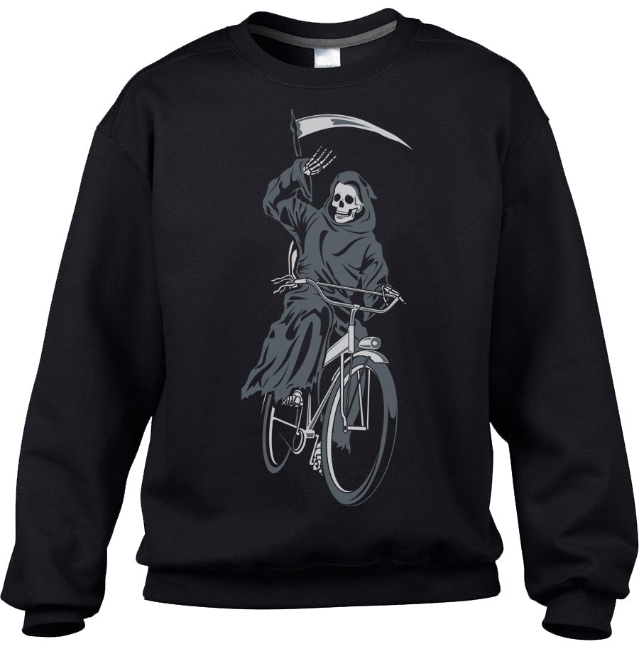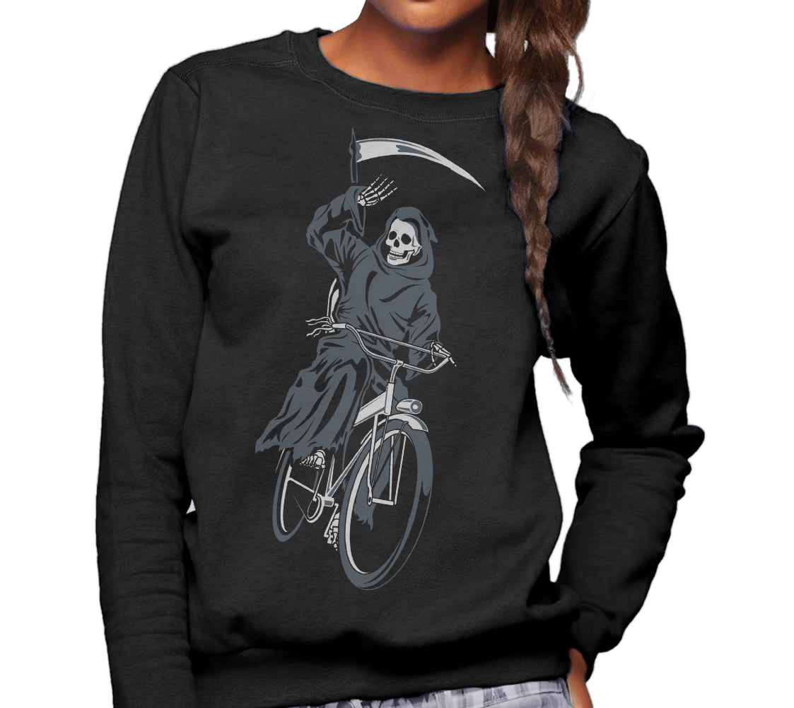 Even death needs a day off now and then. Check out this funny grim reaper on a bike, just enjoying an afternoon of leisure. This funny goth bicycle shirt makes a great gift for anyone with a dark sense of humor.