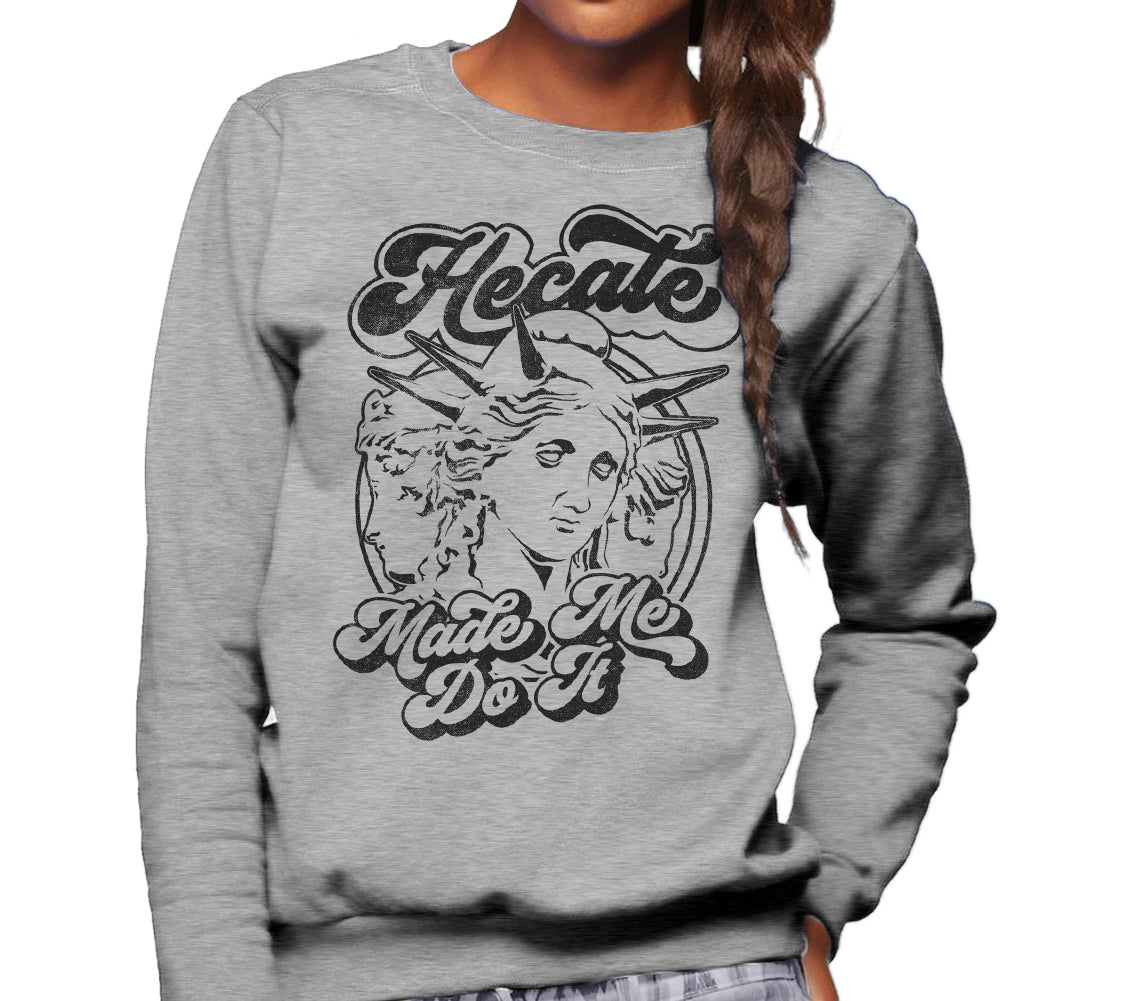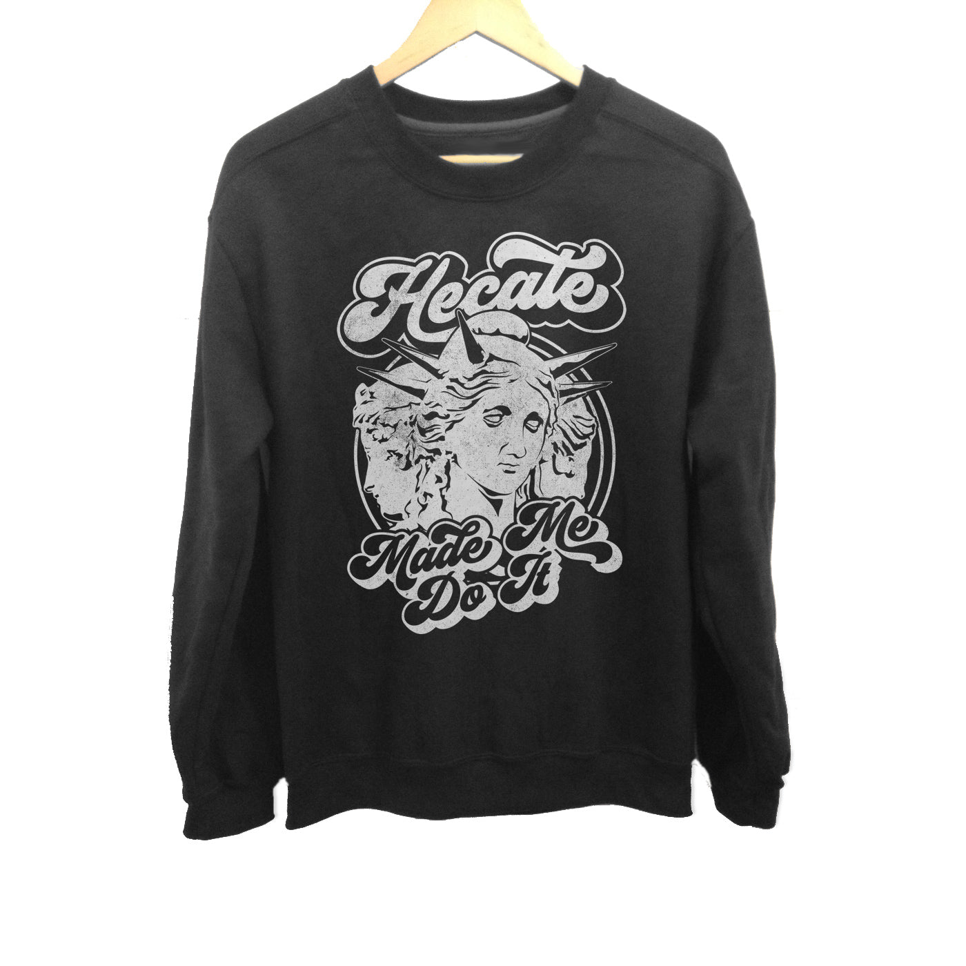 The Greek goddess Hecate is the triple goddess closely associated with crossroads, entrance-ways, light, magic, witchcraft, knowledge of herbs and poisonous plants, ghosts, necromancy, and sorcery. This retro inspired, gothic grunge Hecate shirt makes a great gift for you favorite witch, occult enthusiast, or goth.