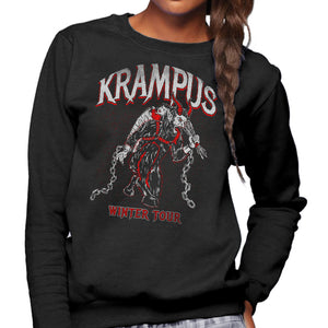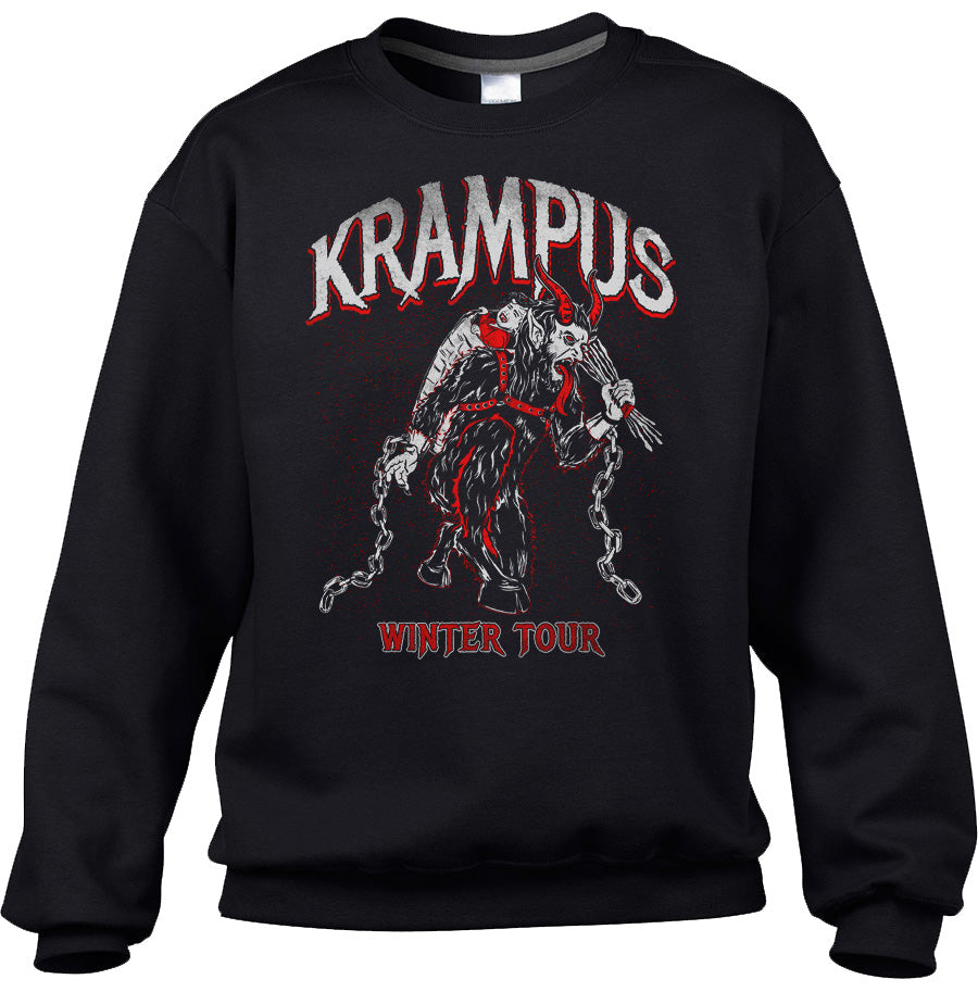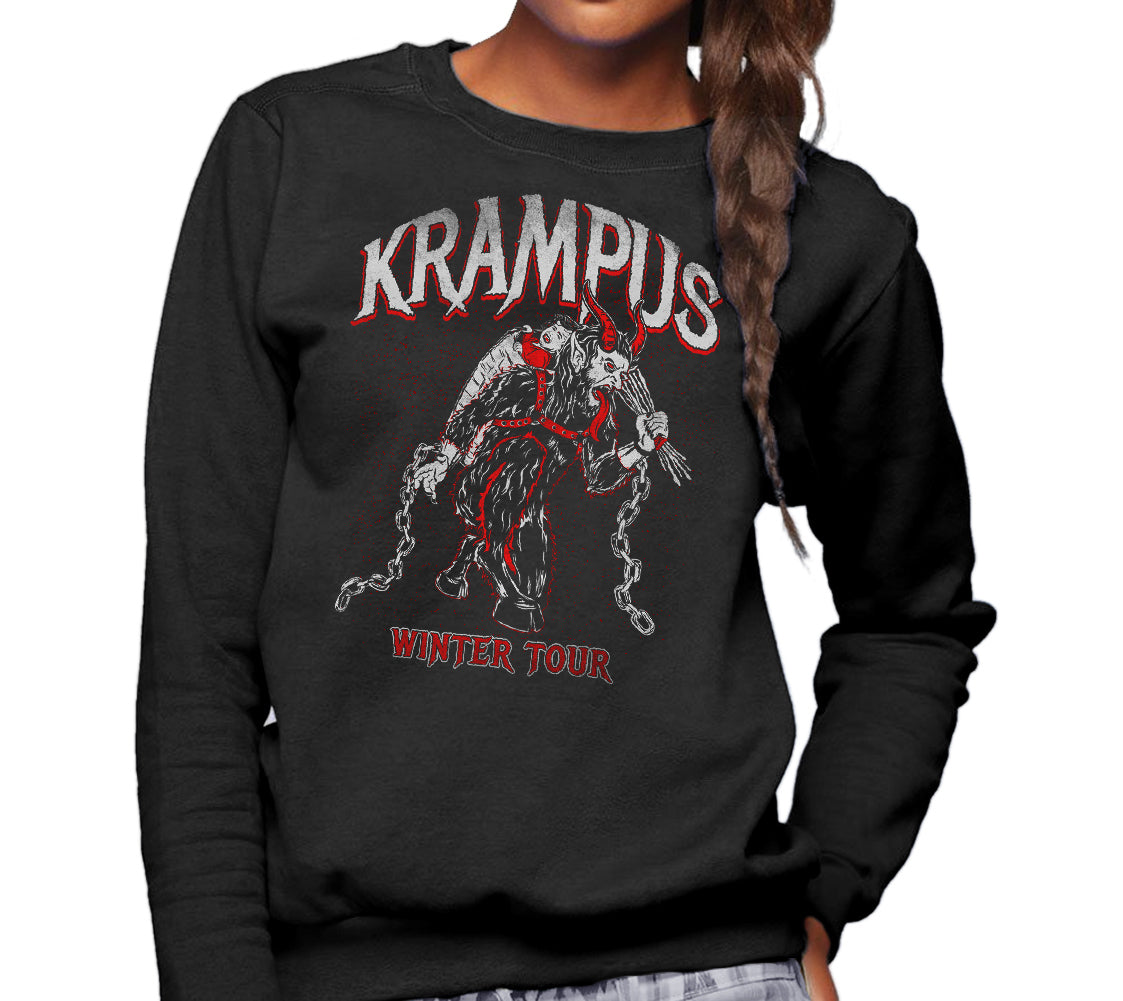 Just in time for Krampusnacht, you can add a dose of horror to your winter holiday festivities with this rock and roll tour inspired Krampus shirt. Our tribute to everyone's favorite Christmas monster features our original Krampus illustration with a dash of red snow and heavy metal inspired typography. With any luck this Christmas demon will swing by and carry off everyone on your naughty list this year!
