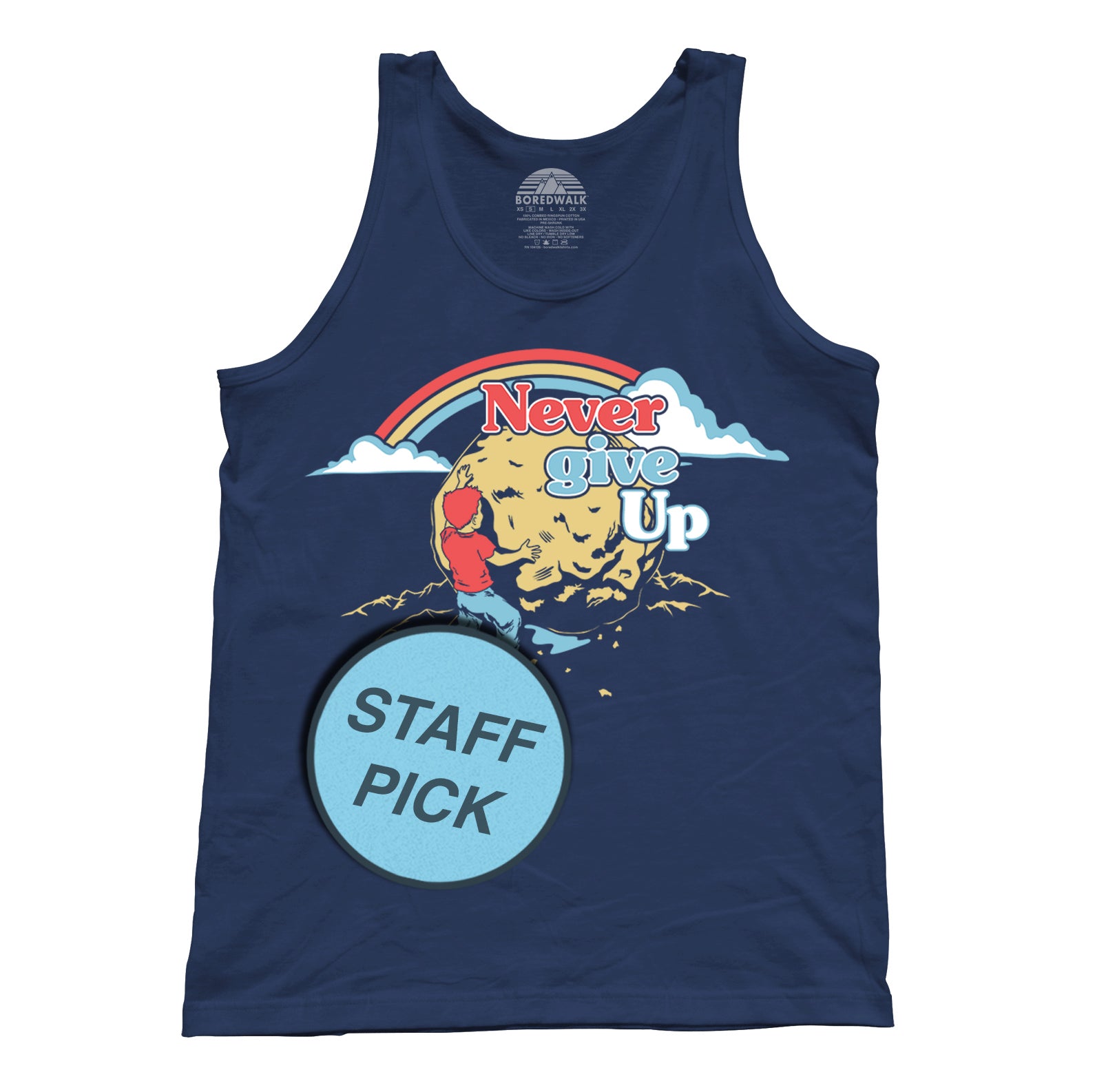 Do we really think Sisyphus was happy pushing the boulder up that hill? This funny dark humor shirt is our nod to all those motivational or inspirational quotes out there about perseverance. If you're a pessimist like us who thinks the boulder is doomed to roll back down the hill this is the perfect shirt for you. Pairs nicely jeans and with the modern dystopia.