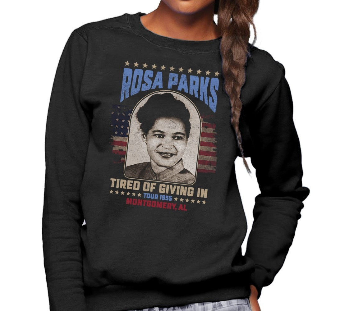 Celebrate Black History Month in February or social justice all year long with this Rosa Parks shirt. Makes a great activist shirt for BLM rallies or an equal rights protest. Also perfect as a history teacher gift. We've combined our tribute to this civil rights heroine with inspiration from classic rock and roll tour shirts, making our Rosa Parks shirt both stylish and inspirational.