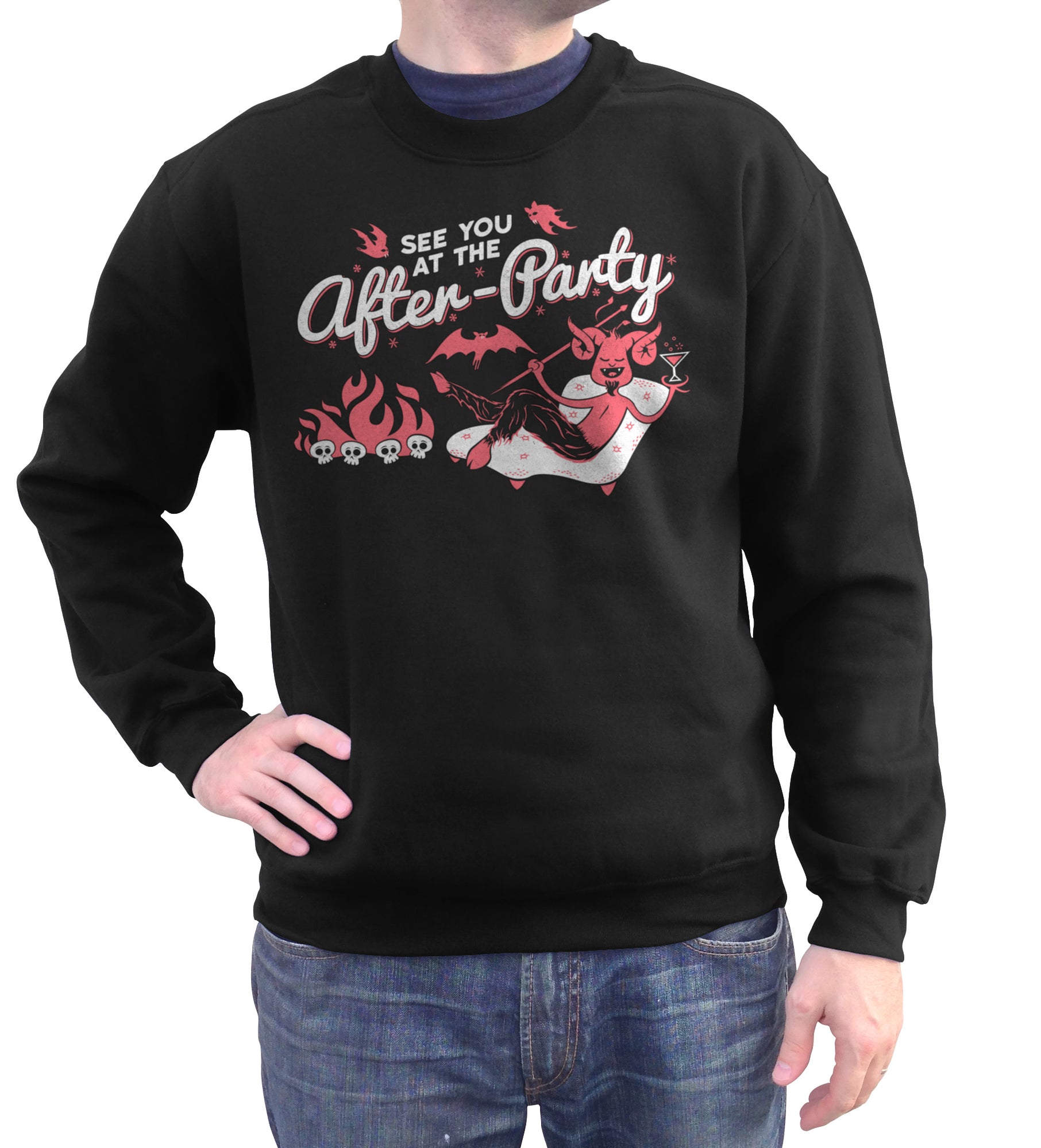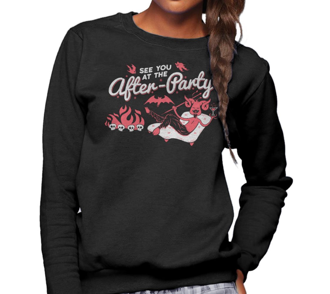 Laugh in the face of death with our cute little devil shirt. It's perfect for sharing a wink with Satan and scoffing at the afterlife. This funny mid-century illustration says "see you in hell" with a retro flair. It makes a great gift for the goth in your life who's not terribly concerned about trying to get into heaven.