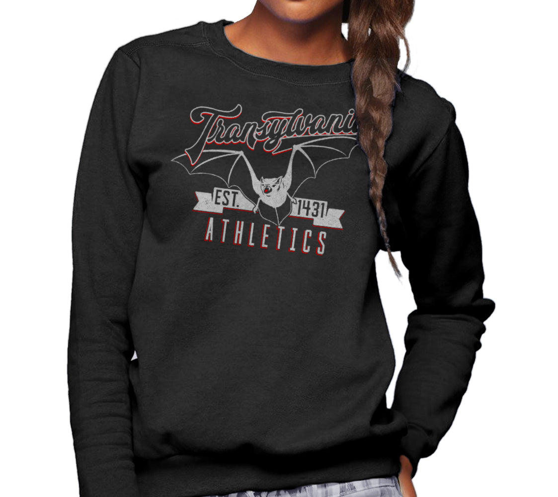 This Bram Stoker inspired athletic shirt makes a great gift for fans of Dracula and vampires. Featuring a vampire bat with a retro aesthetic, our Transylvania Athletics shirt is perfect for the sporty goth or horror lover.