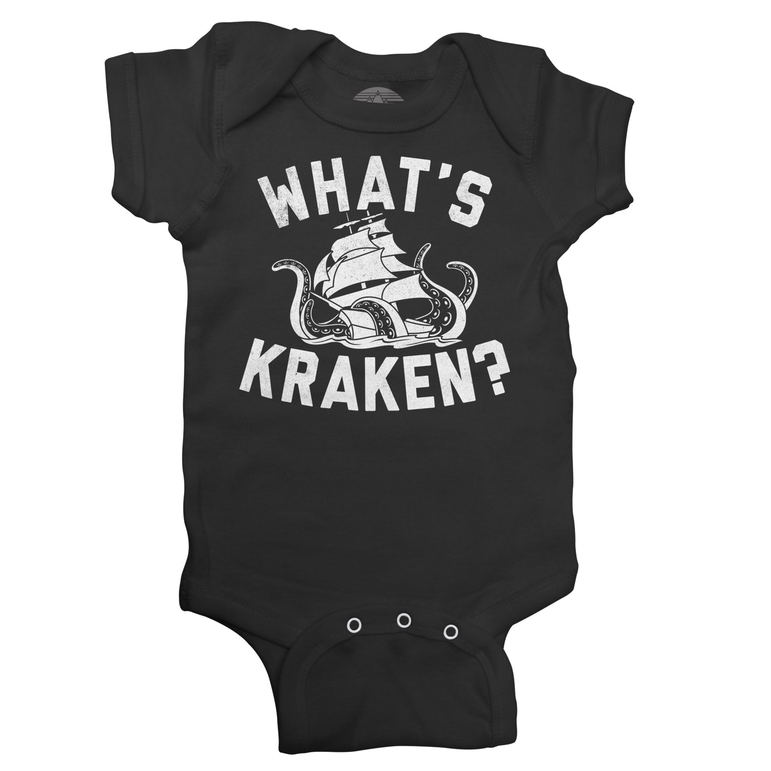 What's up with this giant tentacle beast of the sea? He's causing monster mayhem in the ocean for any ship that crosses his path. Pirates and boat travelers beware, the Kraken is unlike any giant squid or octopus you've ever met. This funny nautical horror infant bodysuit is perfect for anyone who loves monsters, cryptozoology, or just a great pun.
