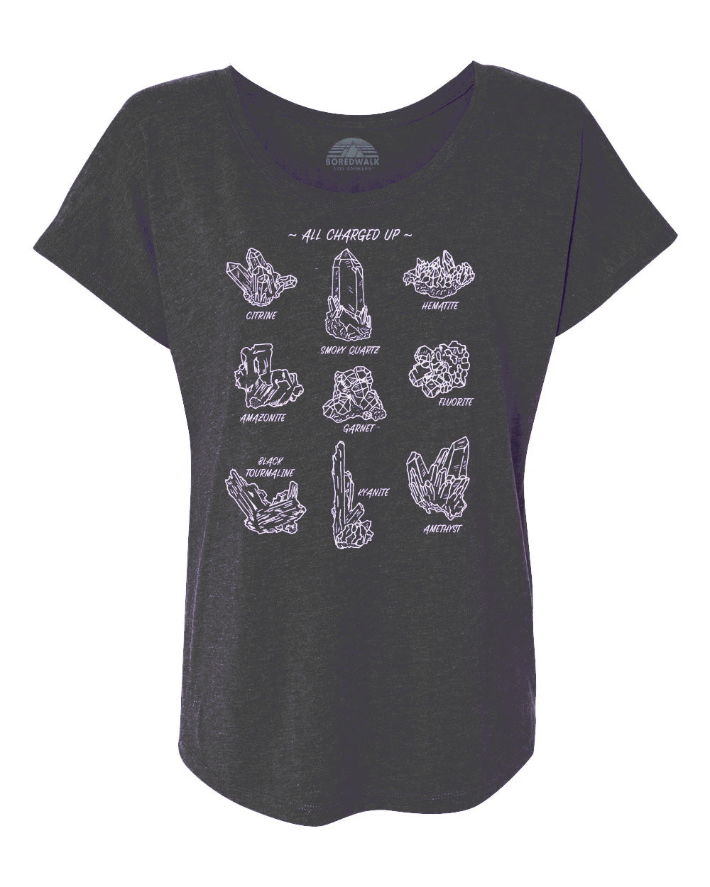 Whether your interest in gems, minerals, and geodes is inspired by a passion for geology or the metaphysical, our crystals chart shirt is a perfect addition to your wardrobe. Featuring gemstones and rocks favored by gemologists and new age fans alike, this occult chic shirt is loaded with hand drawn illustrations of garnet, hematite, fluorite, amethyst, smoky quartz, and other popular crystals. It makes a great gift for a geologist or anyone intersted in reiki healing. Get your chakras aligned in style with this cool crystal chart shirt.