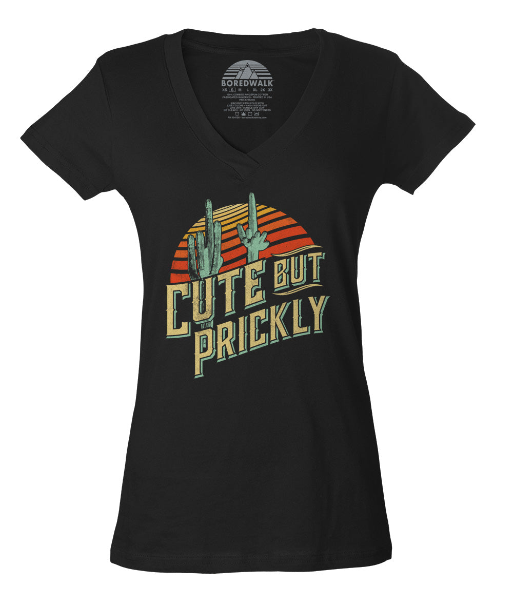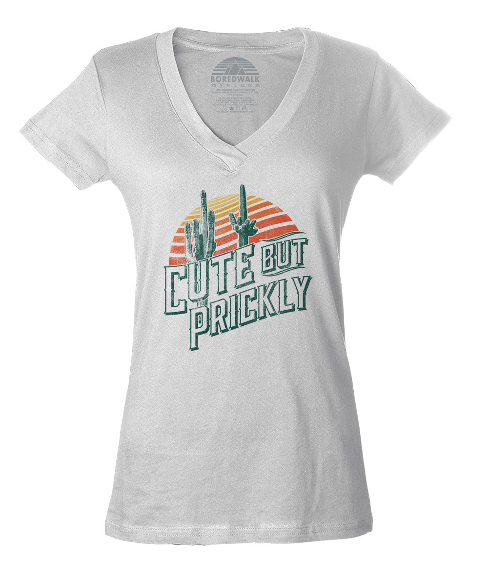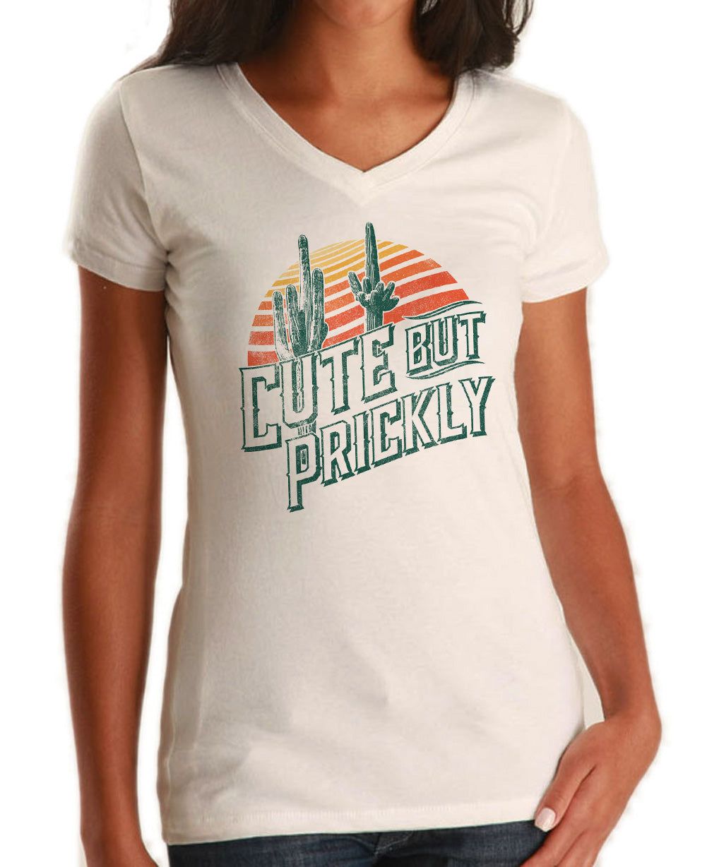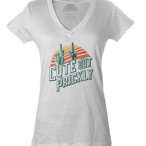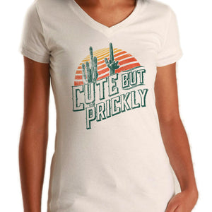 Women's Cute But Prickly Vneck T-Shirt - Cactus Shirt