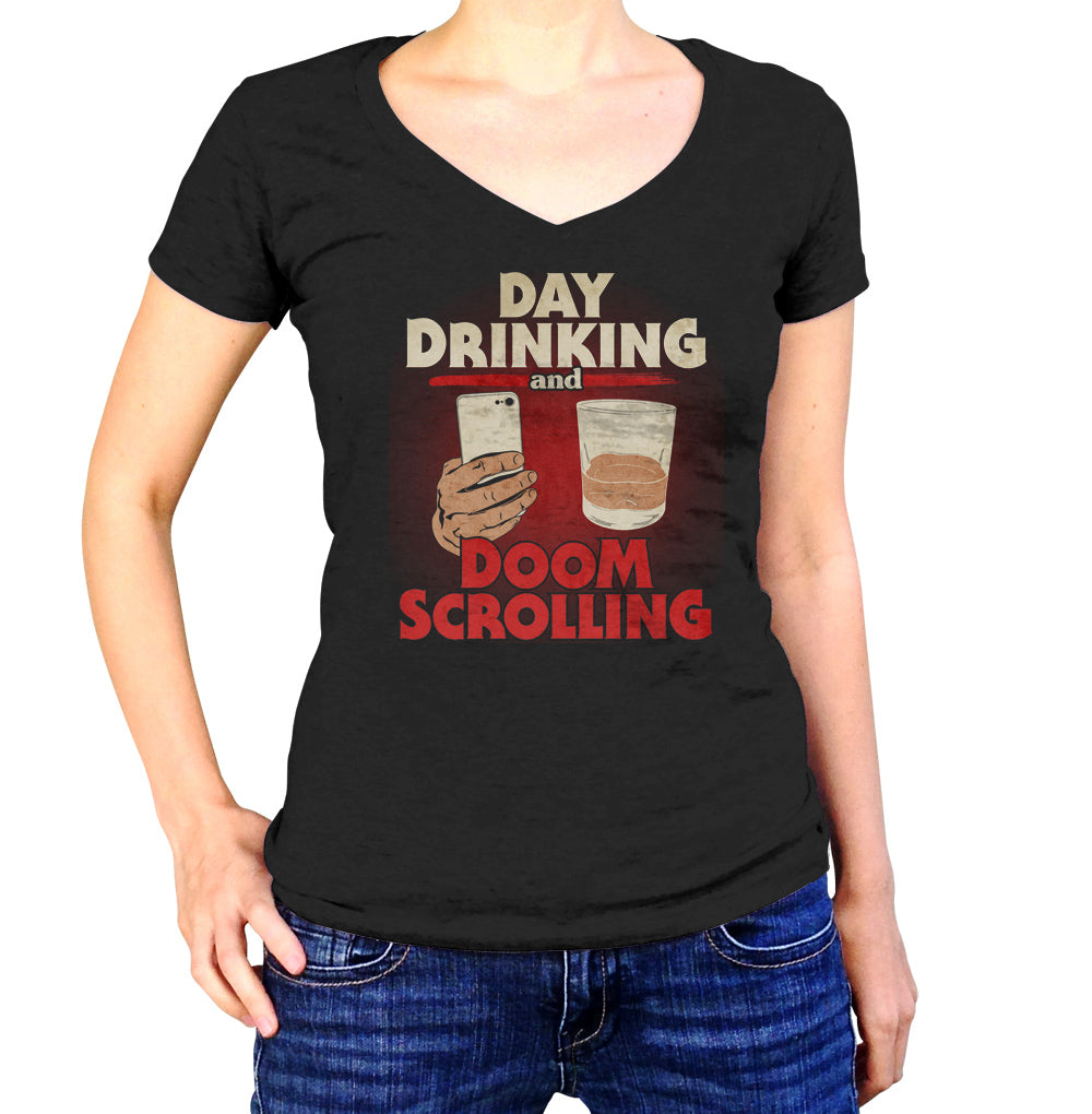 Women's Day Drinking and Doom Scrolling Vneck T-Shirt