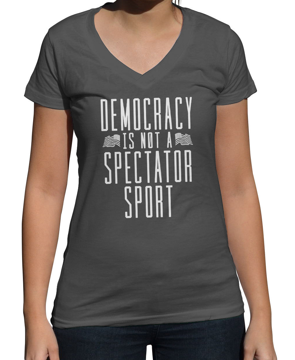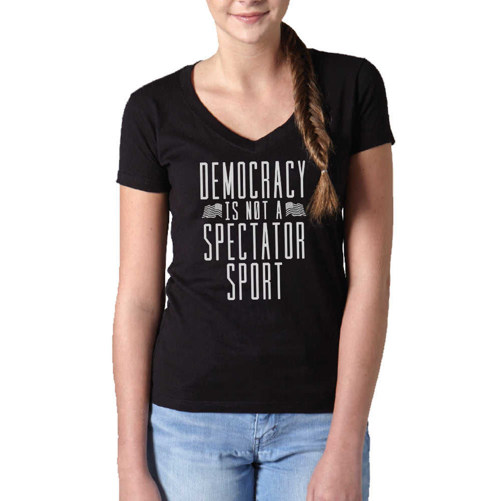 Women's Democracy Is Not a Spectator Sport Vneck T-Shirt - Protest Shirt