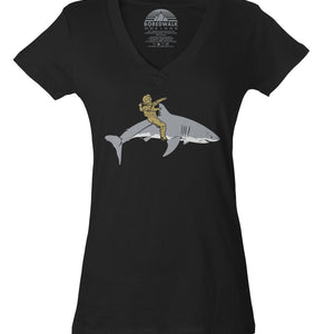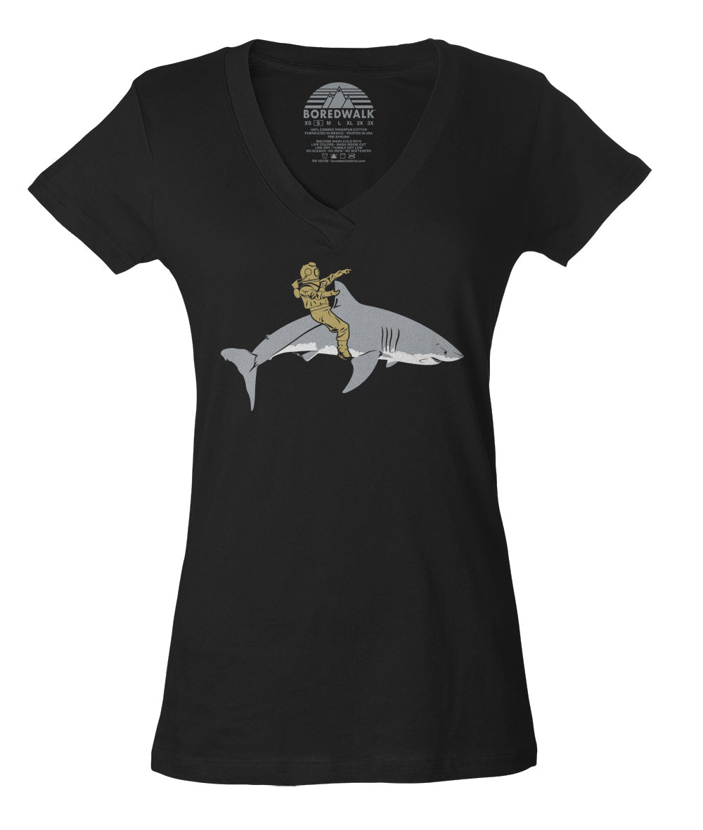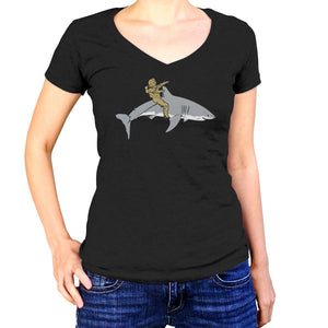 Women's Diver Riding a Shark Vneck T-Shirt - By Ex-Boyfriend