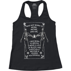 "I was not born to work, retire, and die. I was born to brood, wear a lot of black, and eventually become a feared poltergeist."