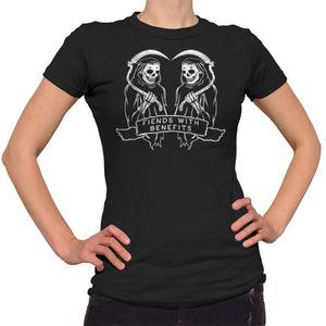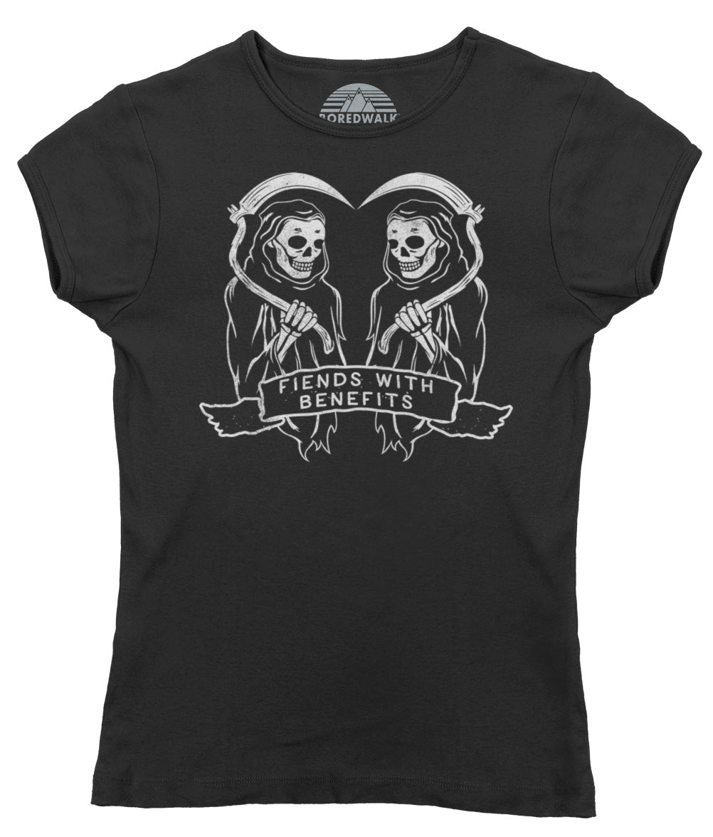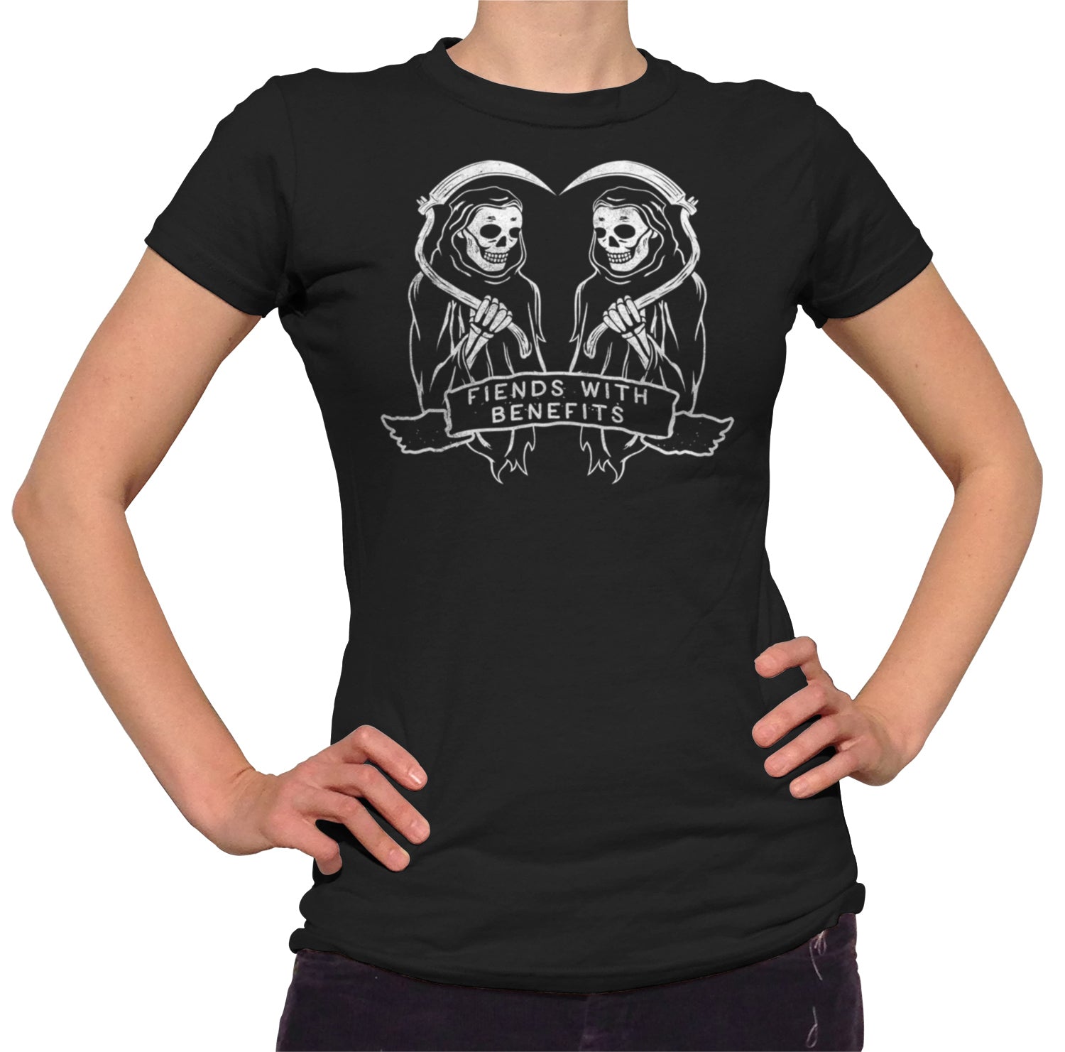 This funny goth shirt is the perfect romantic gift for your favorite fiend. Featuring a grim reaper couple, this cute horror shirt is perfect for an anniversary or Valentine's Day gift for a couple with an appreciation for gothic fashion and a dark sense of humor about love and death.