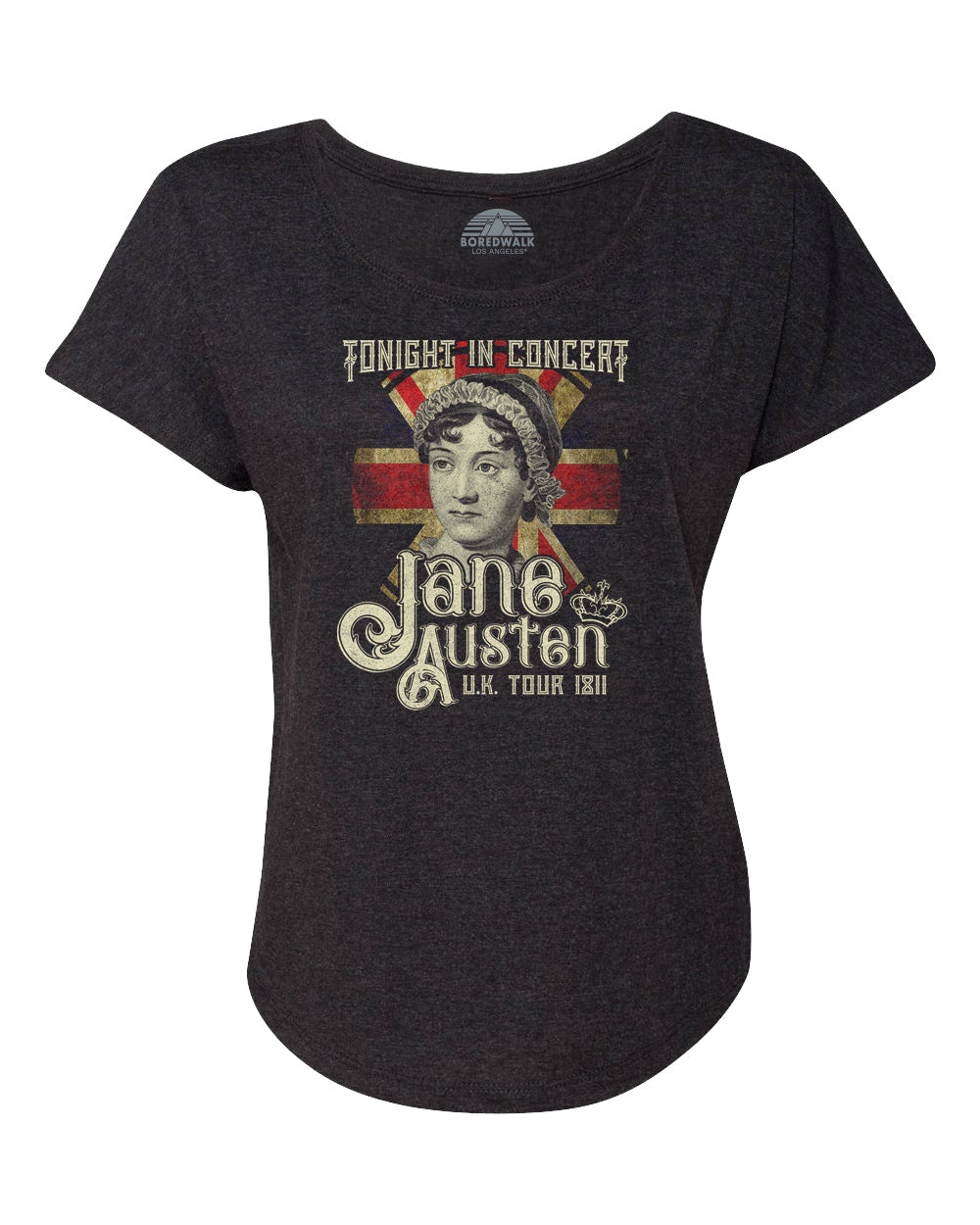 Show off your geeky literary side with this rock and roll concert inspired tribute to Jane Austen. English literature enthusiasts will get a kick out of this funny yet nerdy punk grunge style tribute to one of our favorite British authors.