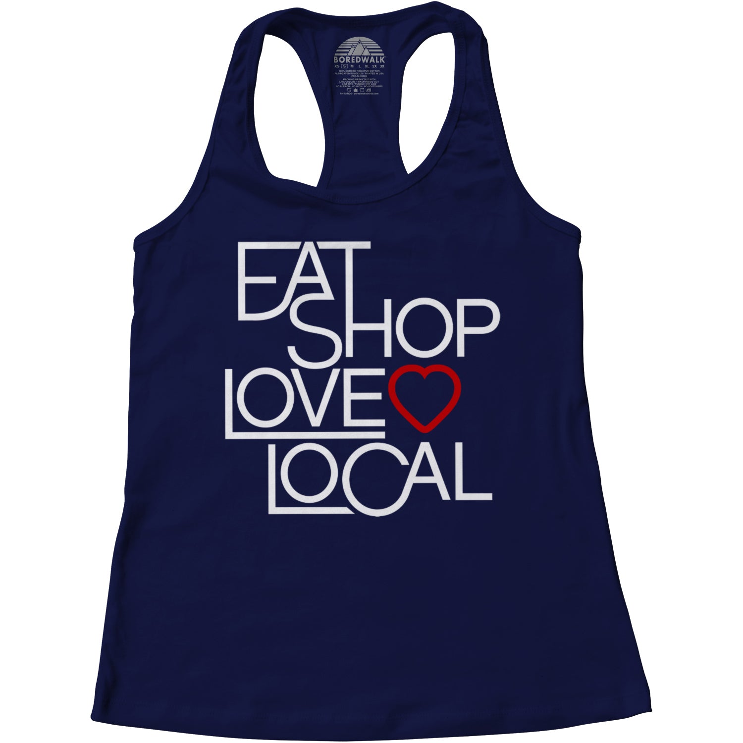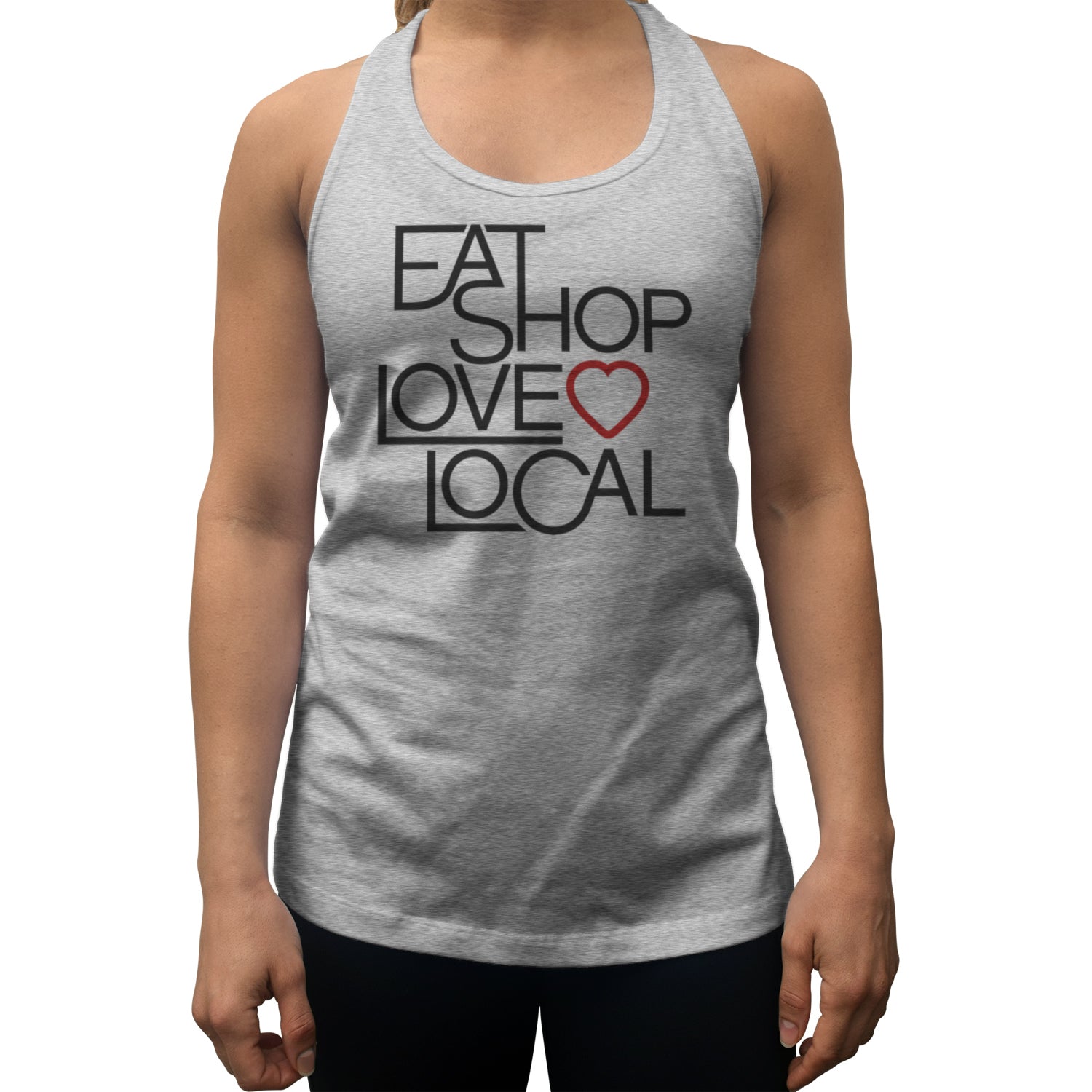 Show off your love for local businesses with our "Eat Shop Love Local" tank top! Whether you're a foodie that wants to show support for your favorite local restaurant, or a community activist promoting shopping with a small business, this hippie shirt is perfect! Our local tank top is great to wear to the farmers market or while pursuing the local shops! Let your community know how much you love them in our localvore shirt!