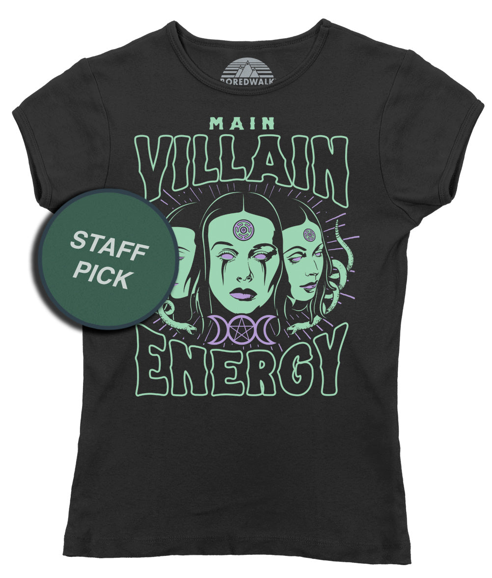 This feminist witch shirt features the goddess Hecate from Greek mythology. Hecate was the goddess of sorcery, magic, witchcraft, passageways, and necromancy. She was a feared and admired triple goddess and has become an empowering symbol for feminism over time. We included her image in this goth shirt, along with the snakes she is often associated with. Like any powerful woman, Hecate could be hero or villain, friend or foe, depending on whether you got on her good or bad side. This cool horror shirt makes a great addition to any Gothic fashion collection.