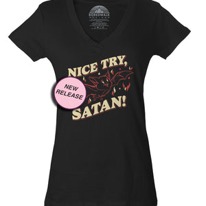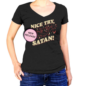 The devil can keep trying, because this cute little bat is adept at escaping his traps. This funny goth shirt is a fun way to show off your resistance to being thwarted or tempted.