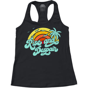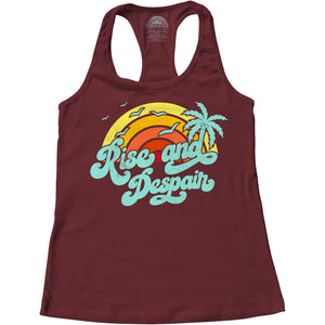 Make an ironic statement about your existential dread with this sunny, funny, 1970s inspired, cynical shirt. Some of us don't so much rise and shine we rise and despair. If that's your style feel free to indulge in your nihilism. Share your pessimist outlook on life when you wear this retro sarcastic shirt. Makes a great gift for philosophy students, or the nihilist or existentialist in your life.