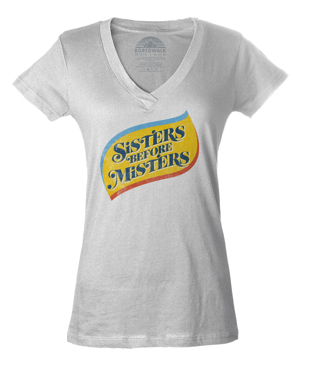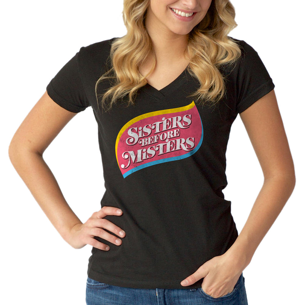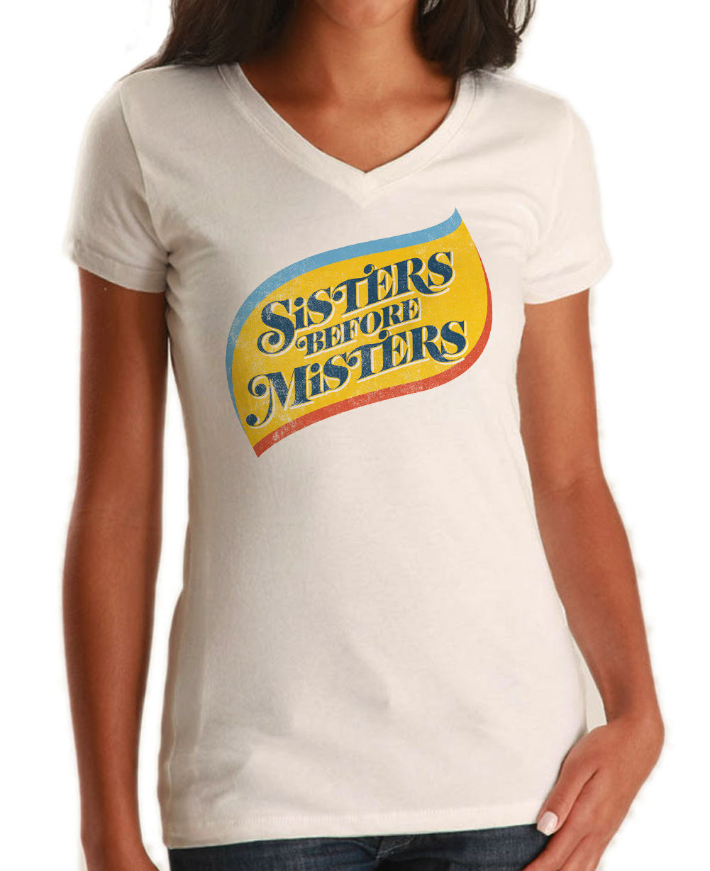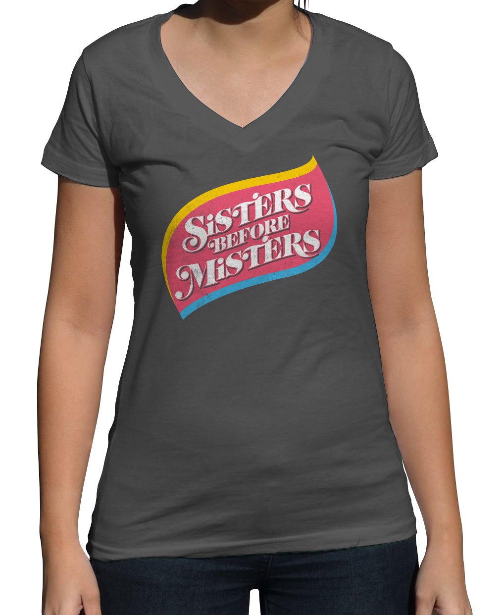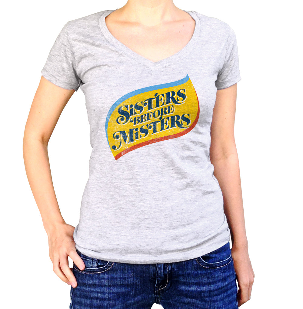 Women's Sisters Before Misters Vneck T-Shirt - Feminist Shirt