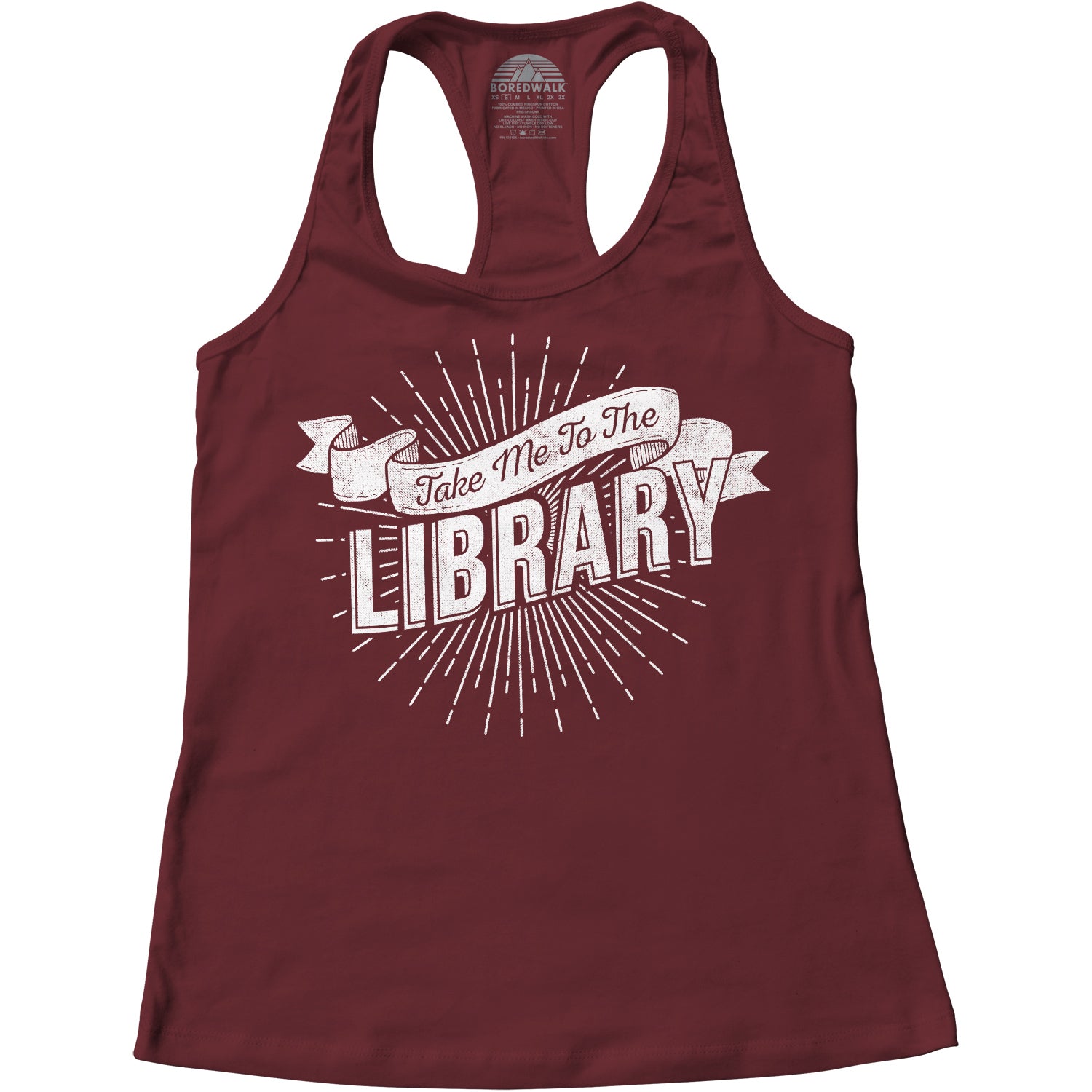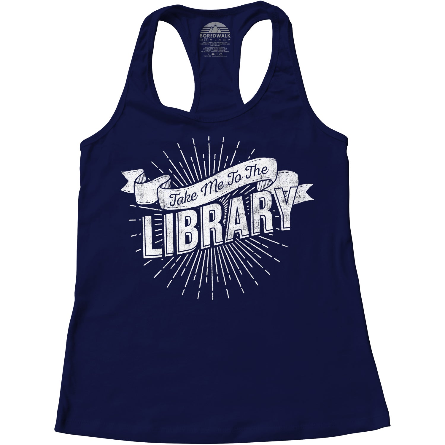 Hey, bookworm! Looks like when you're not soaking up knowledge at your local library you're perusing for some book shirts that speak to your passion for reading! Whether you're a librarian who appreciates reading tank tops or a nerdy book lover who swoons over library shirts on Etsy and Tumblr, this geeky shirt is bound to make your pages flutter. So, if the library or little old bookstores deeply satisfy your hunger for learning or immersing yourself in great fiction, please take the time to express yourself by sharing your humble pastime with our "Take Me to The Library" tank top!