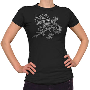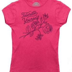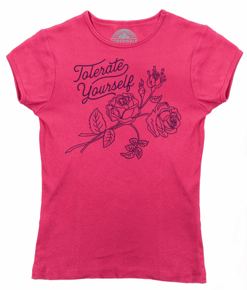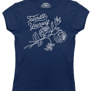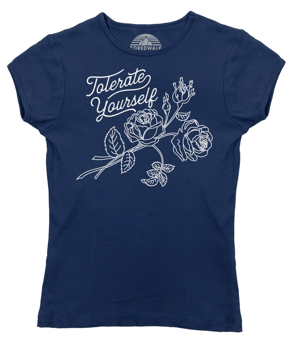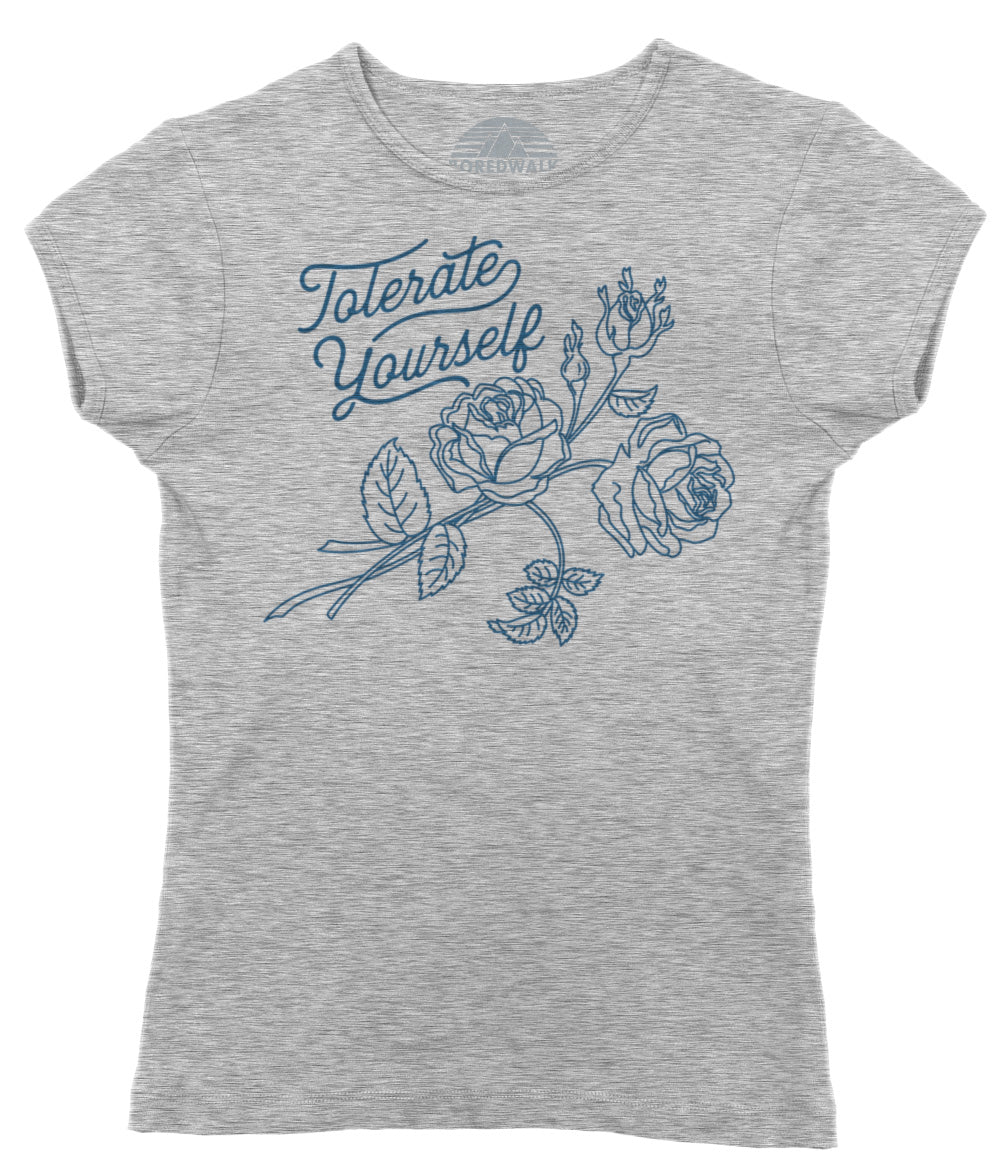 The mental health and toxic positivity crowd will lecture you about self love all day, but for some of us it's setting the bar a little too high. If you can't love yourself, might we suggest that you tolerate yourself. If you're looking to graduate from "I hate myself" to "I can live with myself" this is the funny inspirational shirt for you. It also makes a great gift for a therapist, psychologist, psychology student or therapy goer -- perfect for anyone who appreciates their self care with a dose of dark humor.