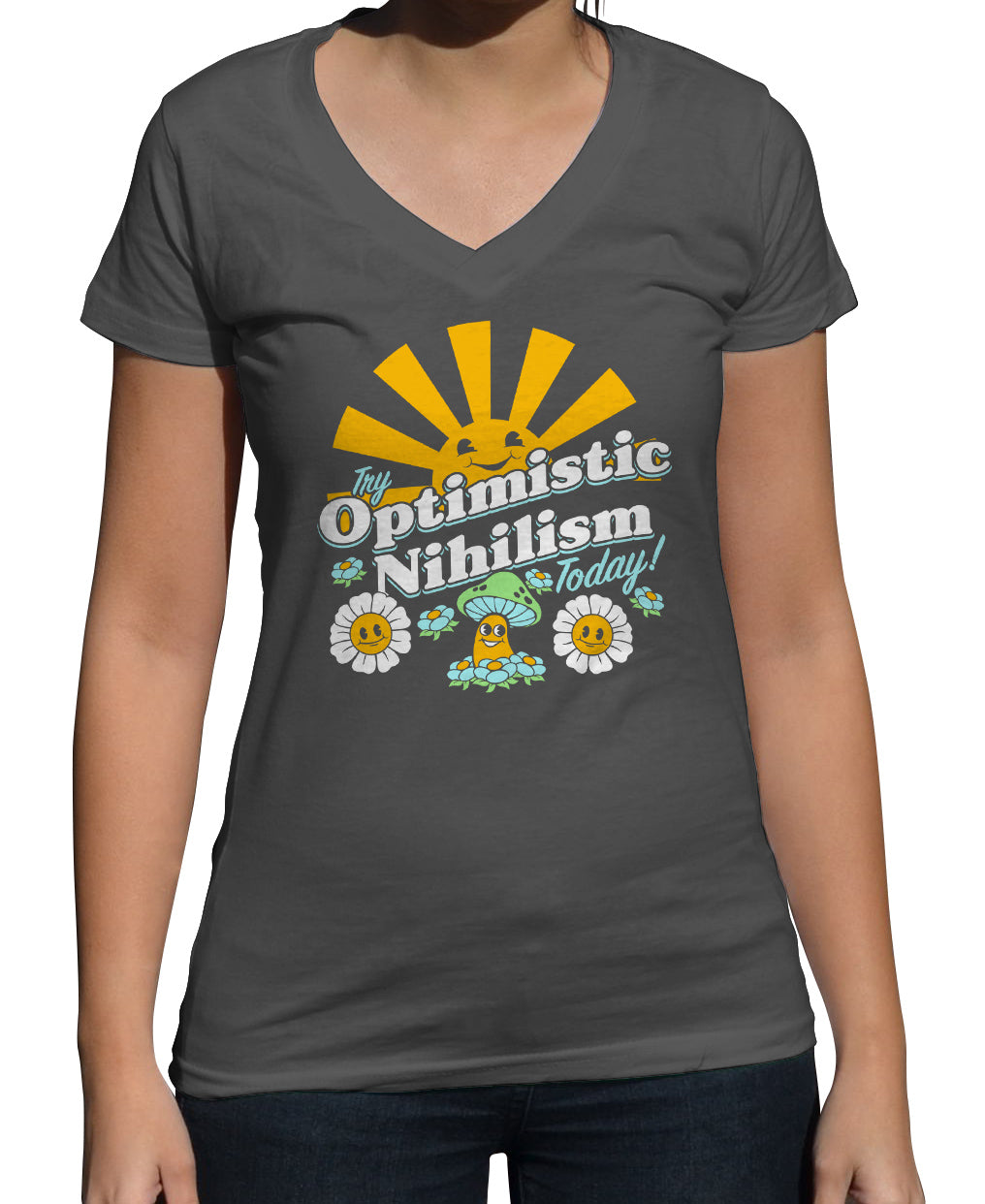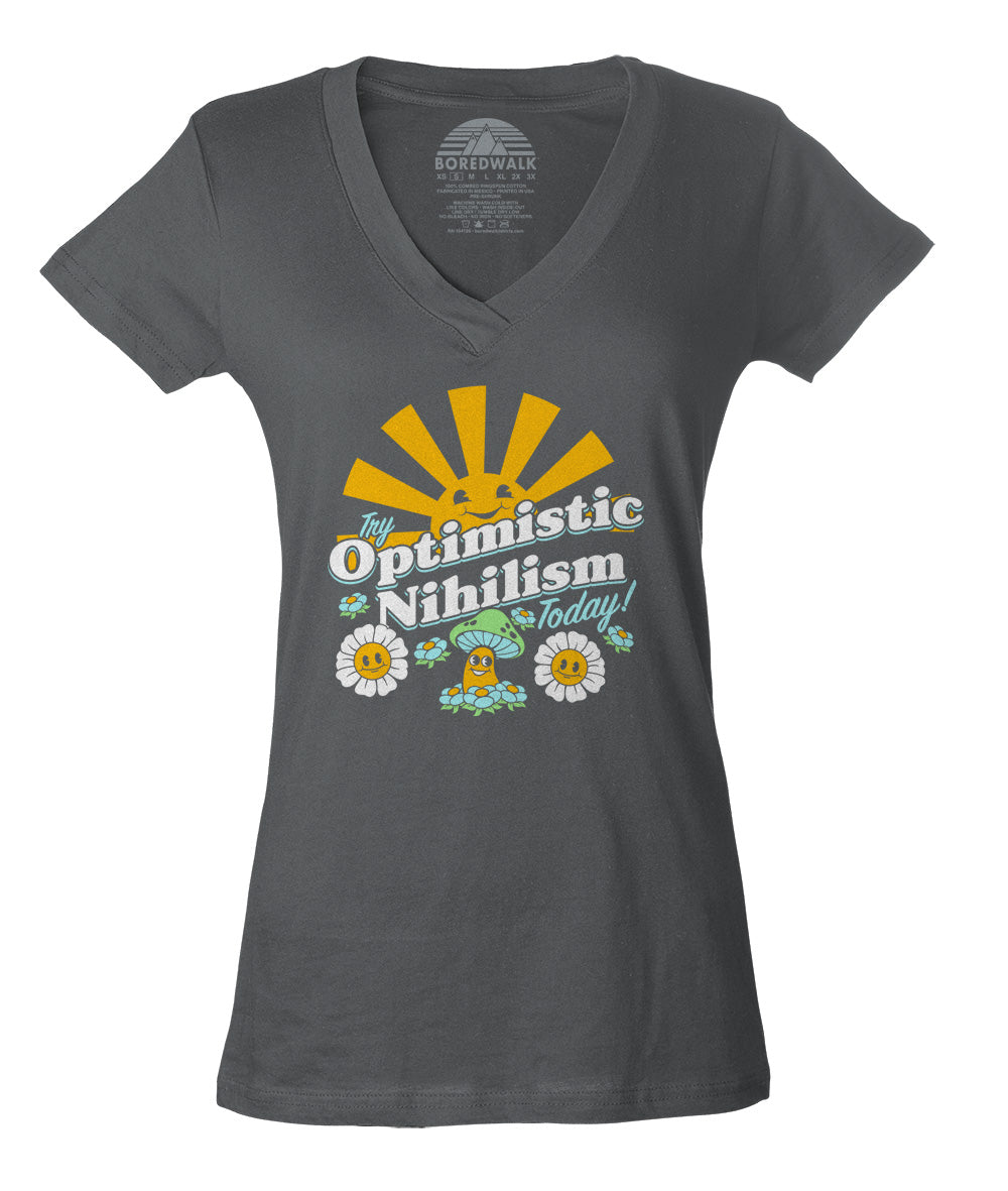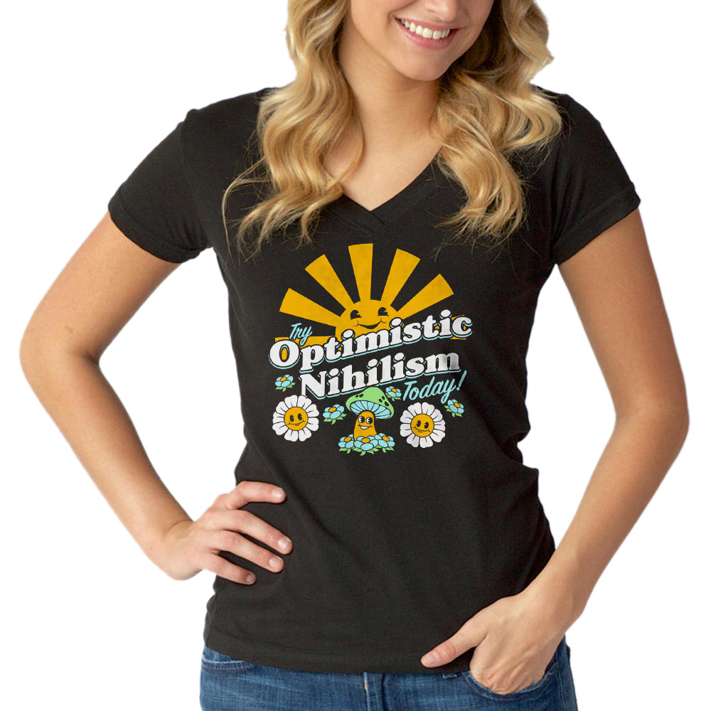 Women's Try Optimistic Nihilism Today Vneck T-Shirt
