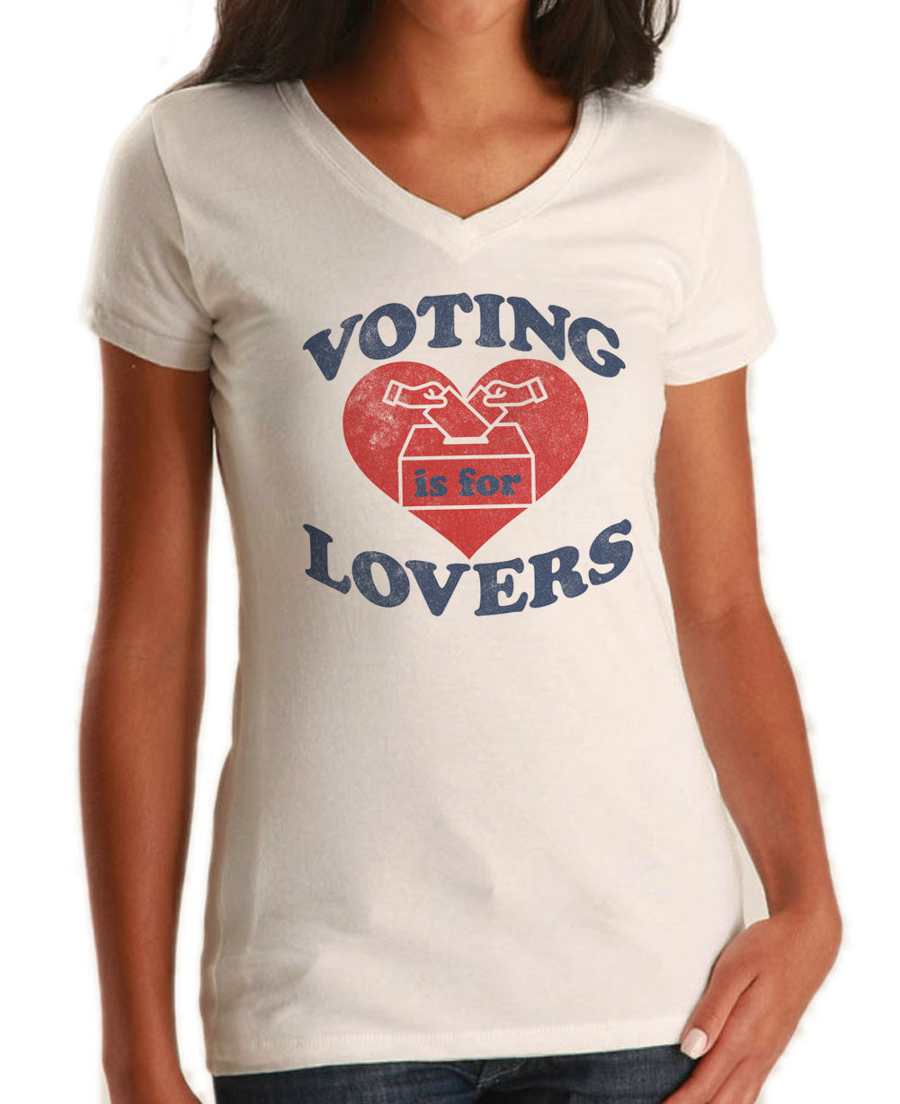 Celebrate democracy with this election shirt that encourages everyone to get out the vote. This retro inspired political shirt is perfect for the activist who is registering people to vote or the Democrat canvassing for their favorite candidate. Celebrate civic engagement in style with this 1970s inspired voter shirt.