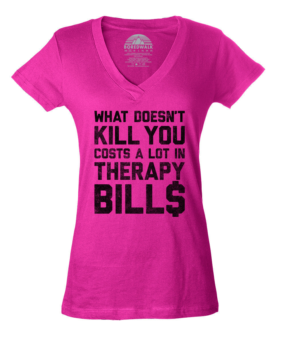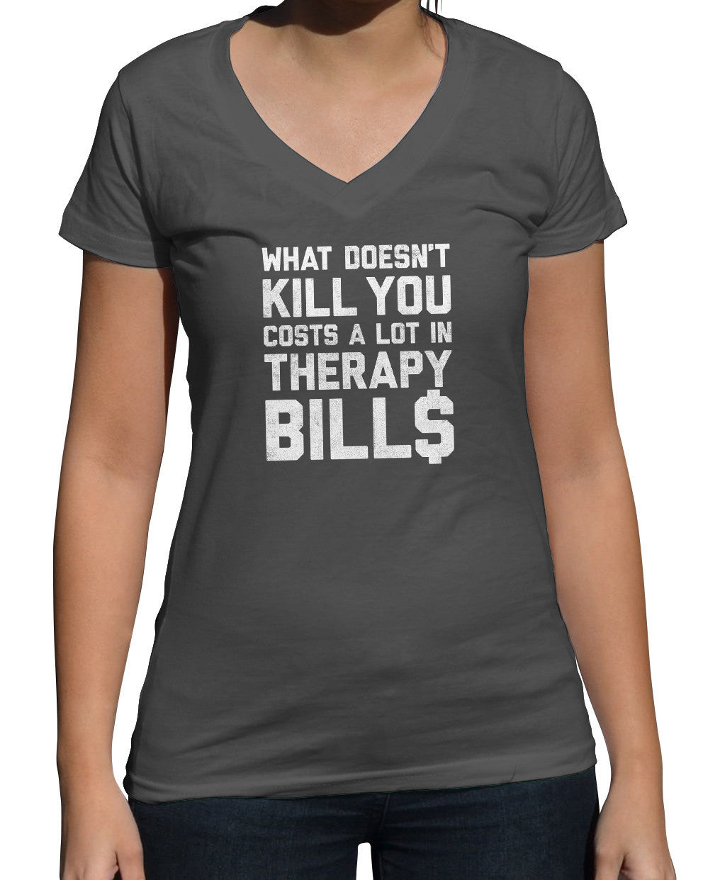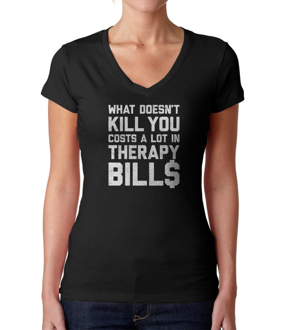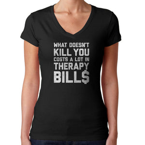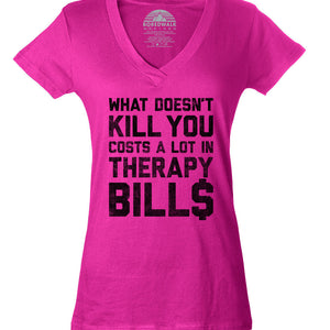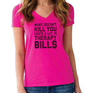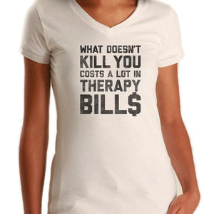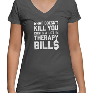 Women's What Doesn't Kill You Costs a Lot in Therapy Bills Vneck T-Shirt